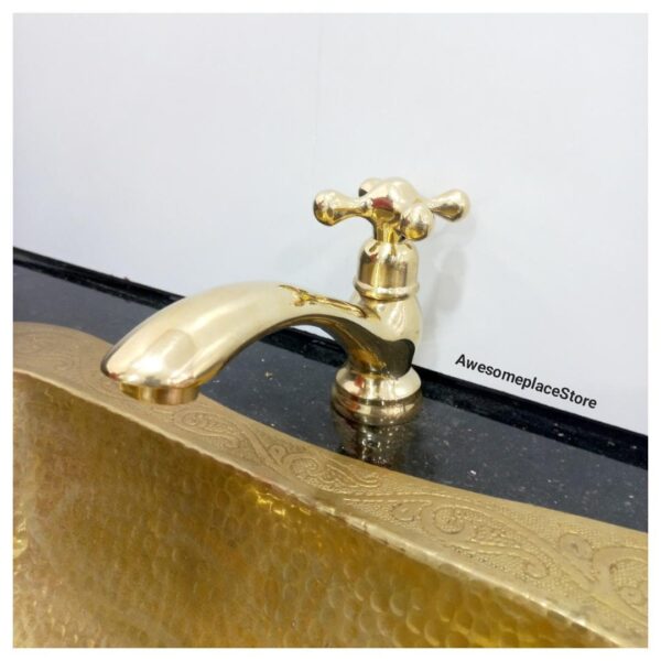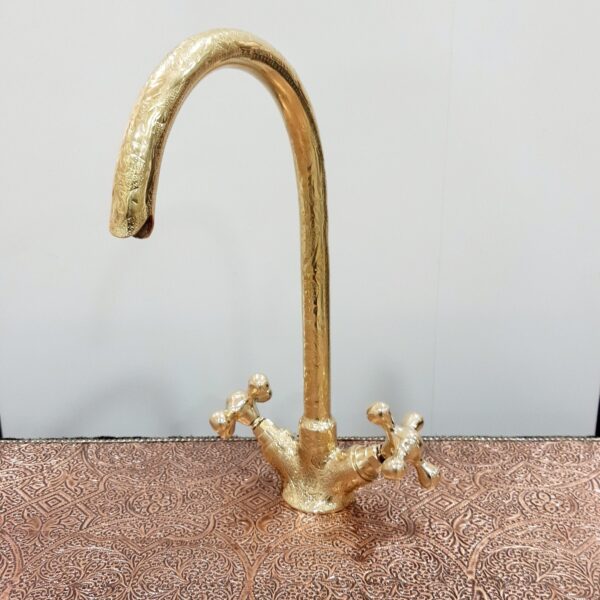 Discover the elegance of living finishes with our handcrafted unlacquered brass faucet, a masterpiece of Moroccan artistry.