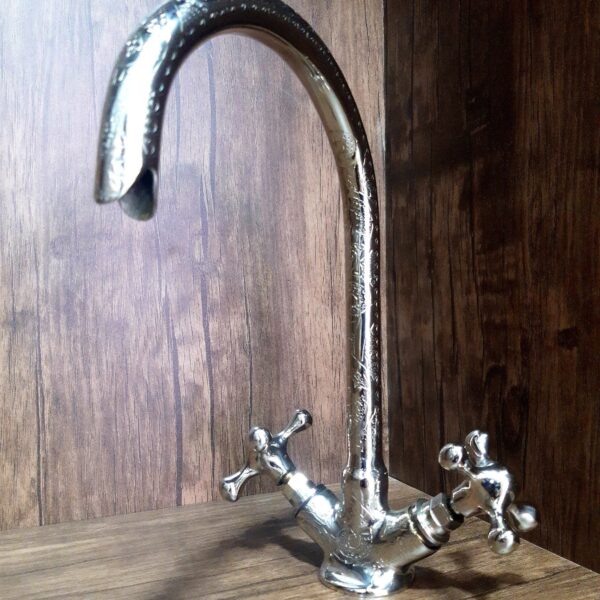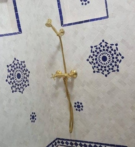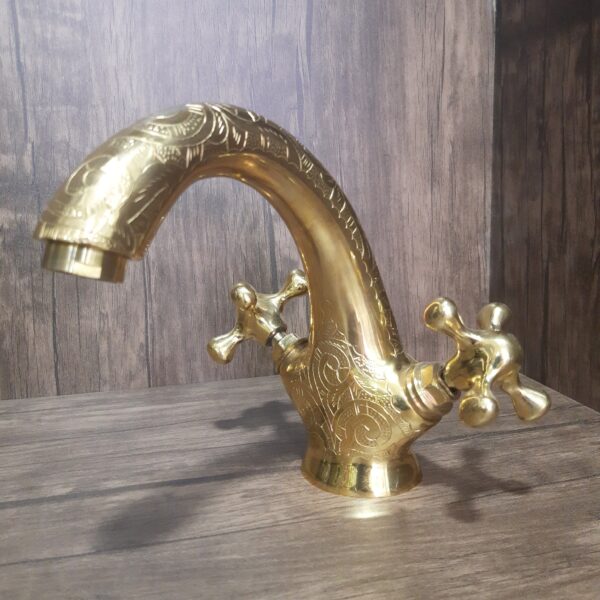 Discover the elegance of living finishes with our handcrafted unlacquered brass faucet, a masterpiece of Moroccan artistry.