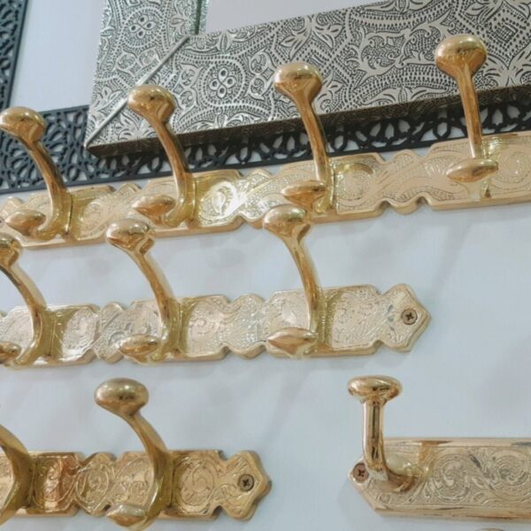 Transform your entryway or bathroom with these intricately detailed, hand-engraved solid brass hooks.