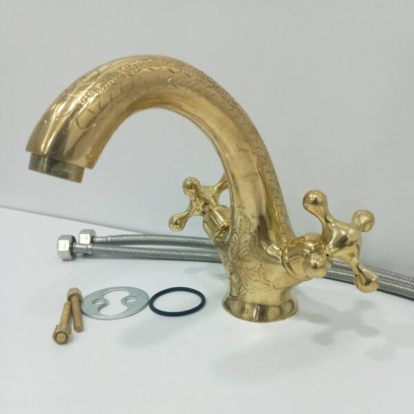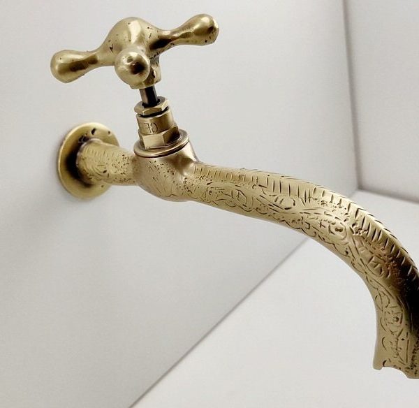 Discover the elegance of living finishes with our handcrafted unlacquered brass faucet, a masterpiece of Moroccan artistry.