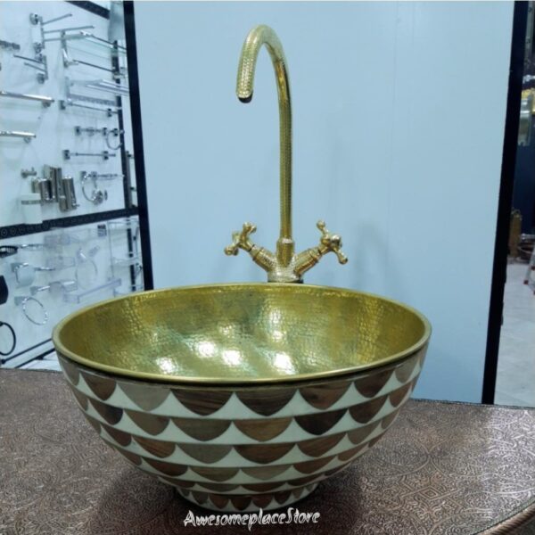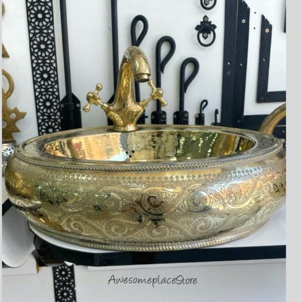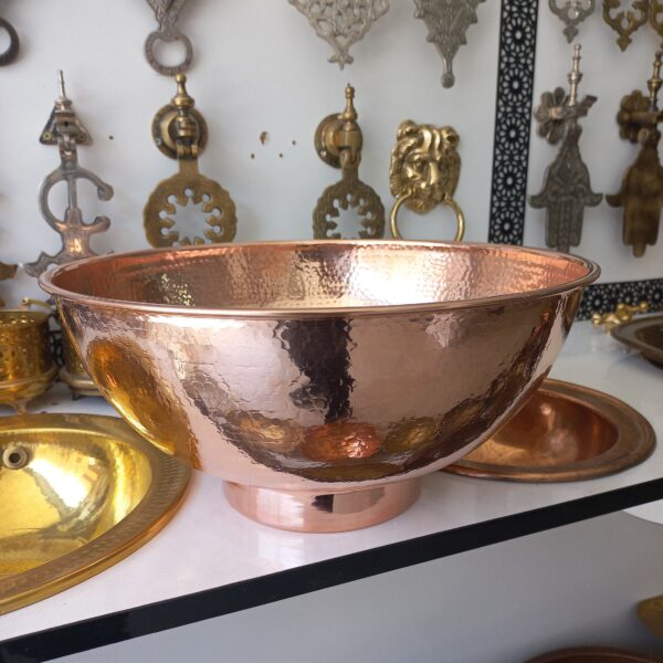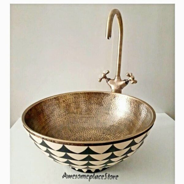 Redefine your vanity or kitchen with the organic beauty of our hand-hammered brass sinks. Meticulously crafted from heavy-gauge solid brass, these basins showcase the unique marks of the artisan’s hammer, creating a rhythmic texture and radiant glow. A stunning alternative to standard fixtures, our Moroccan-inspired sinks offer a bold, luxurious focal point designed to withstand daily use while maintaining their artisanal charm.