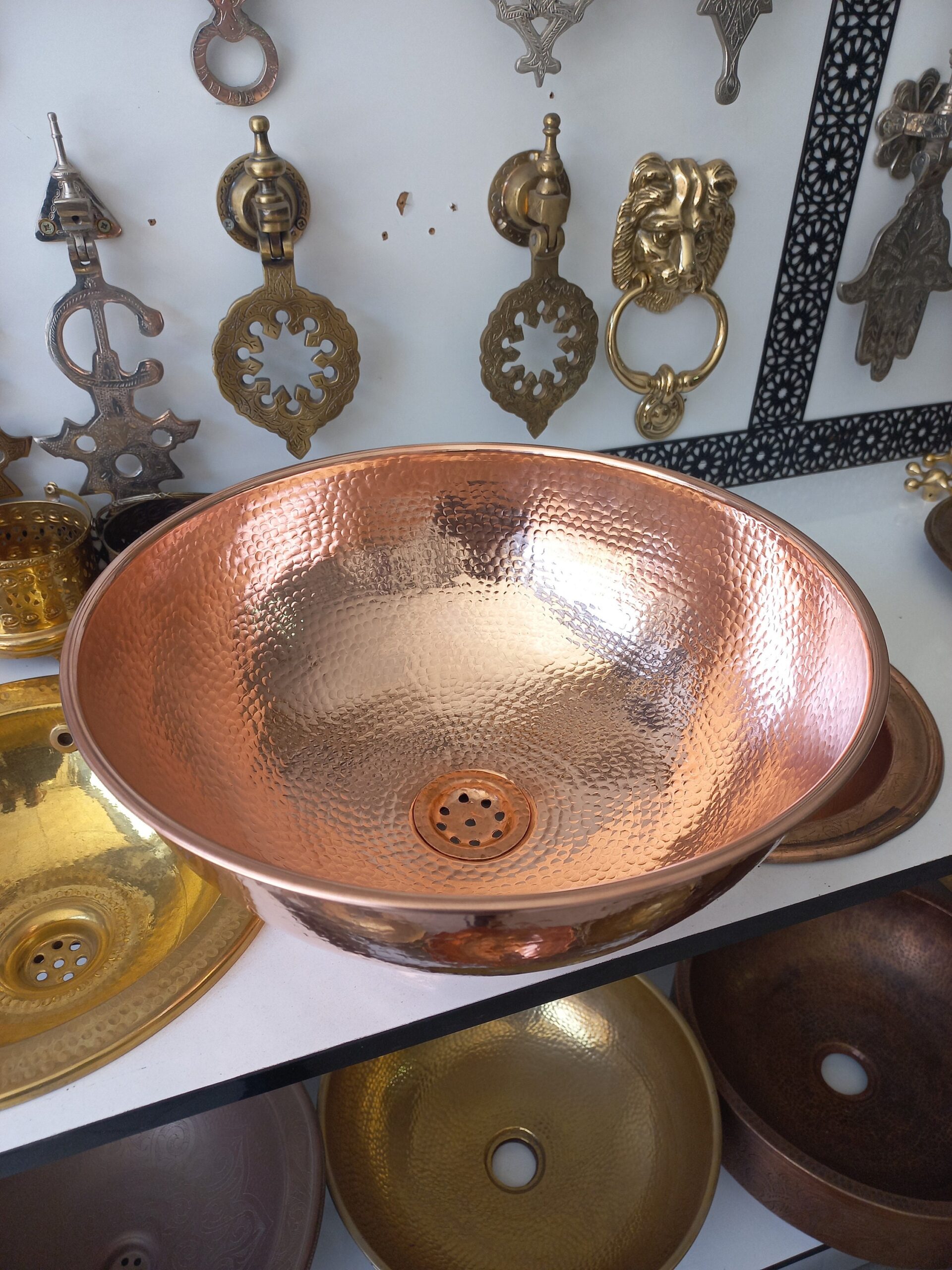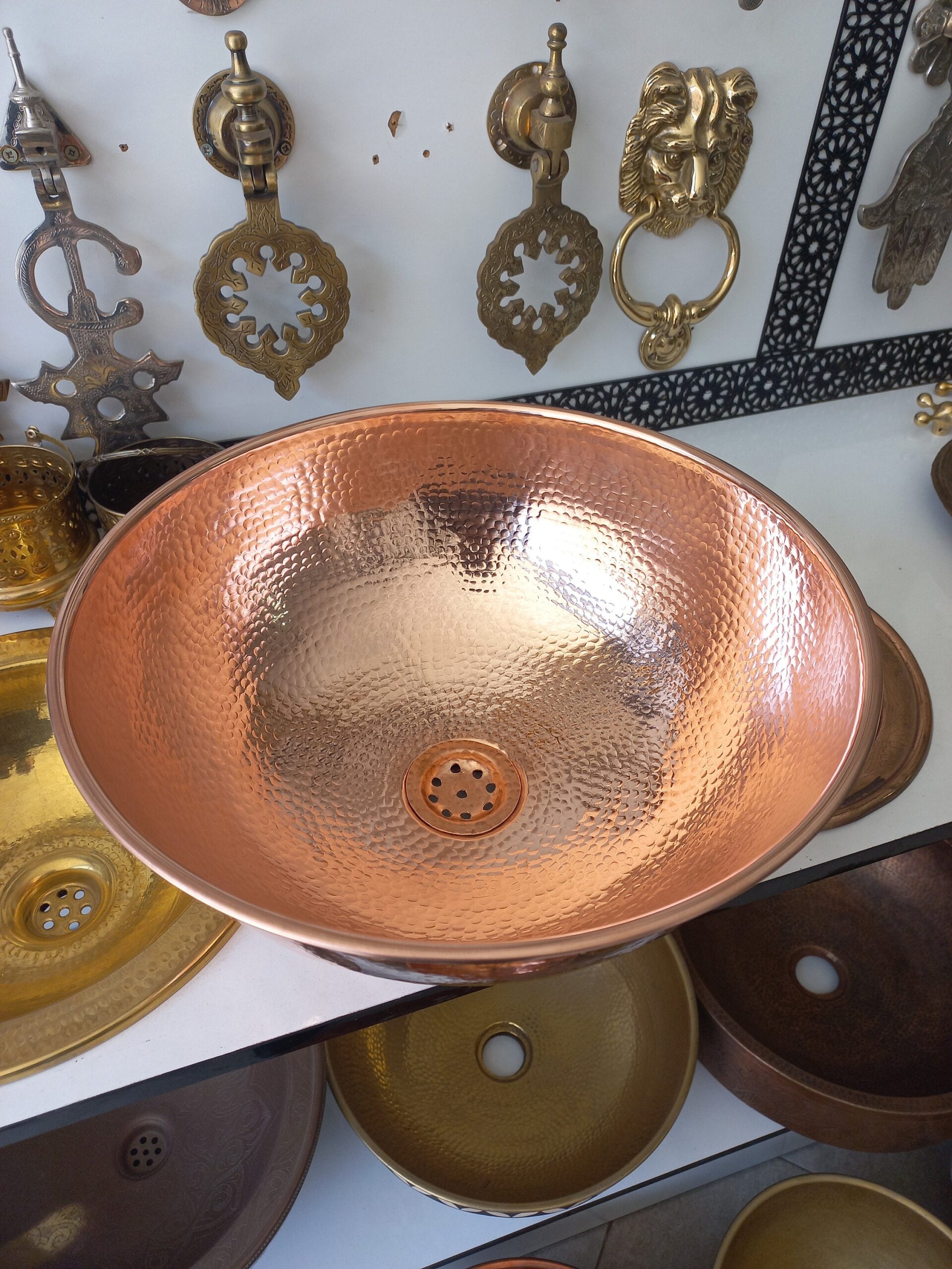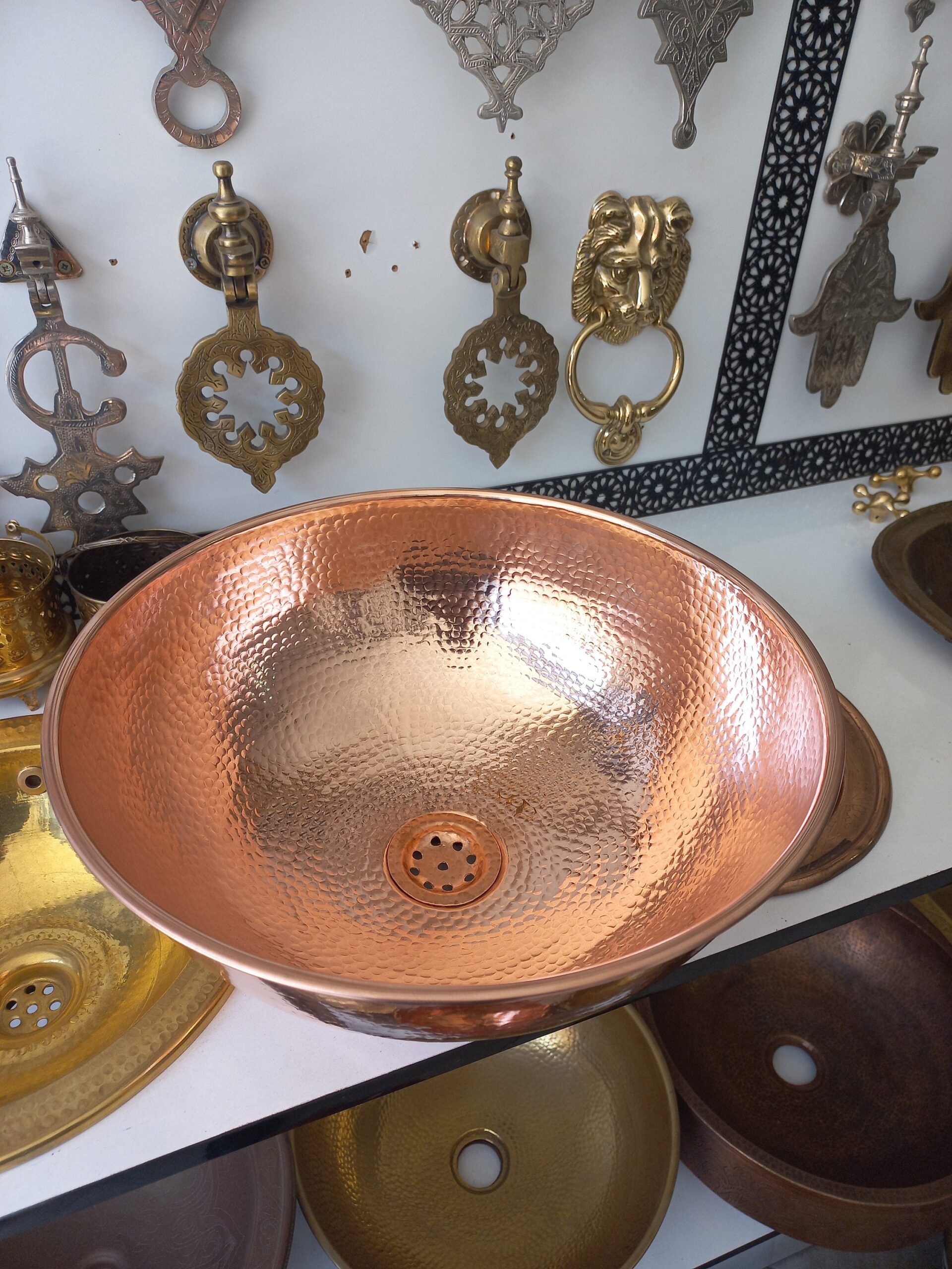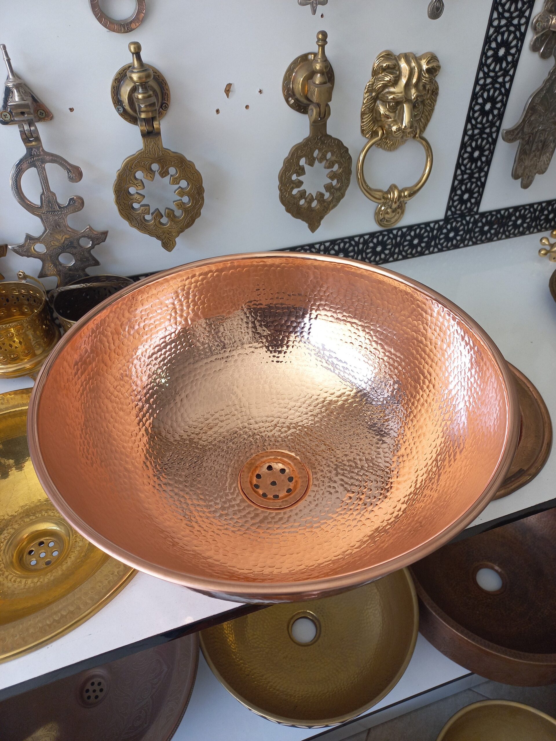 - Round hammered copper sink for bathroom-Farmhouse Sink-Handmade vessel washbasin-Antique red copper sink , copper drop in sink.