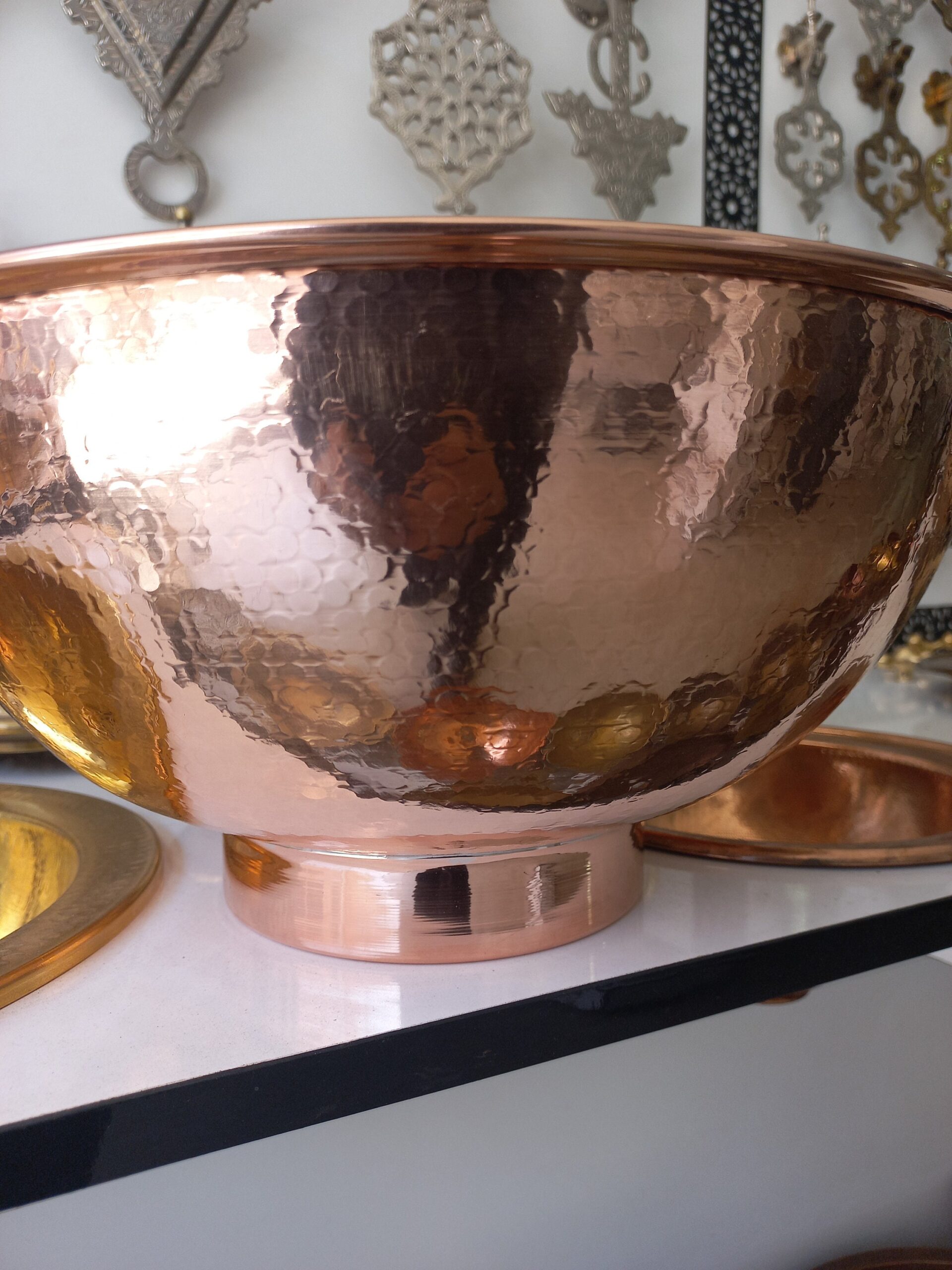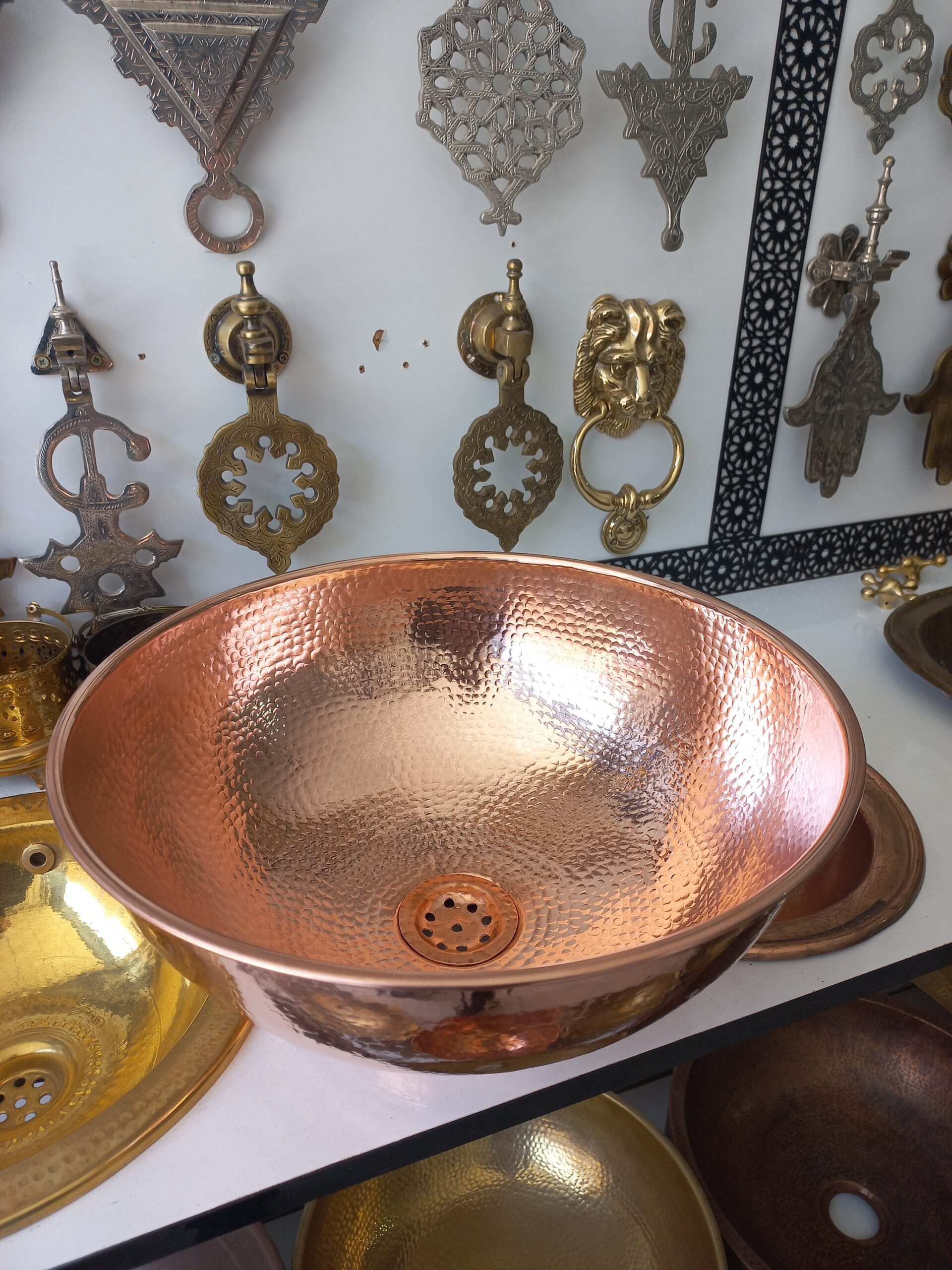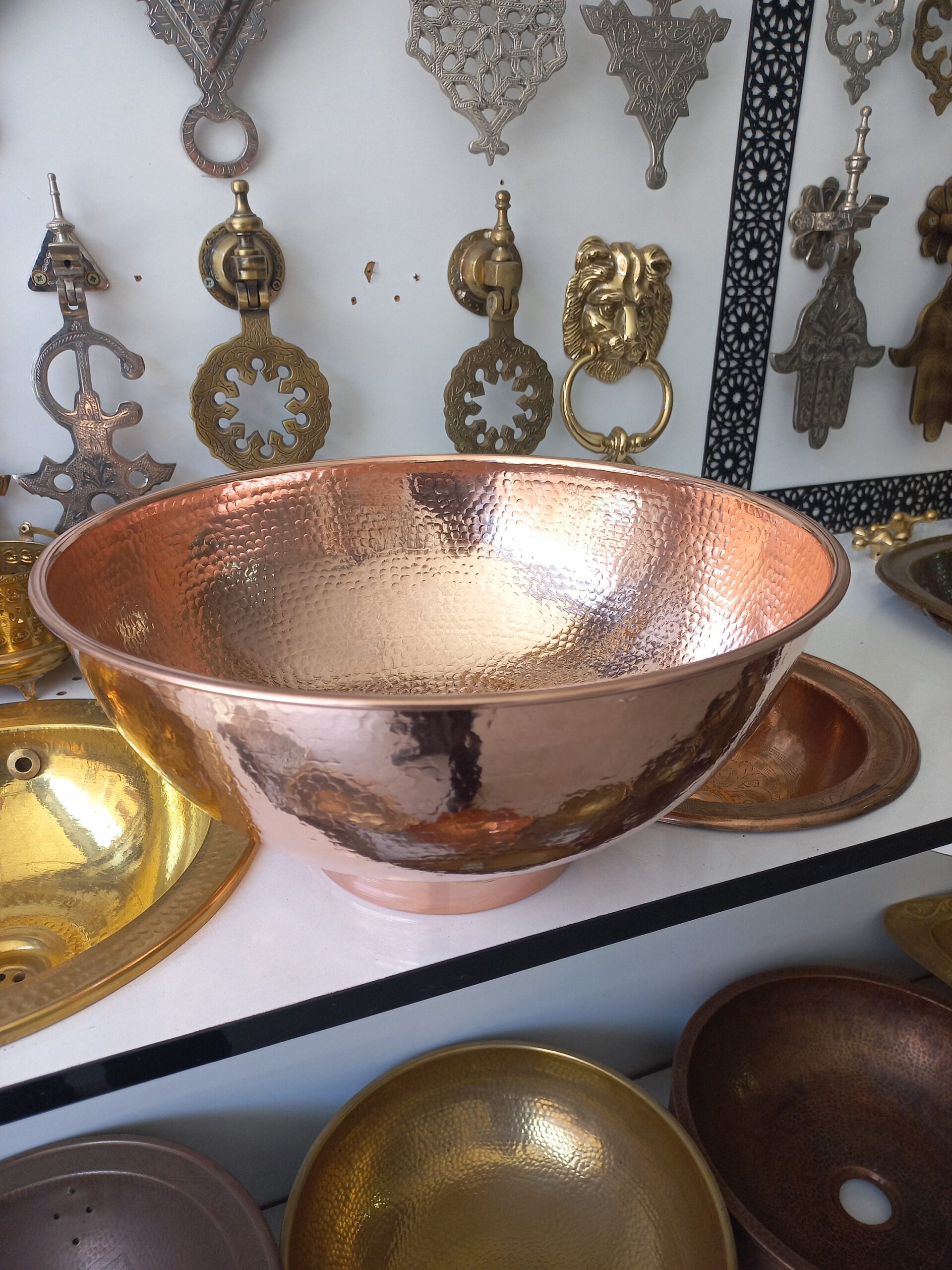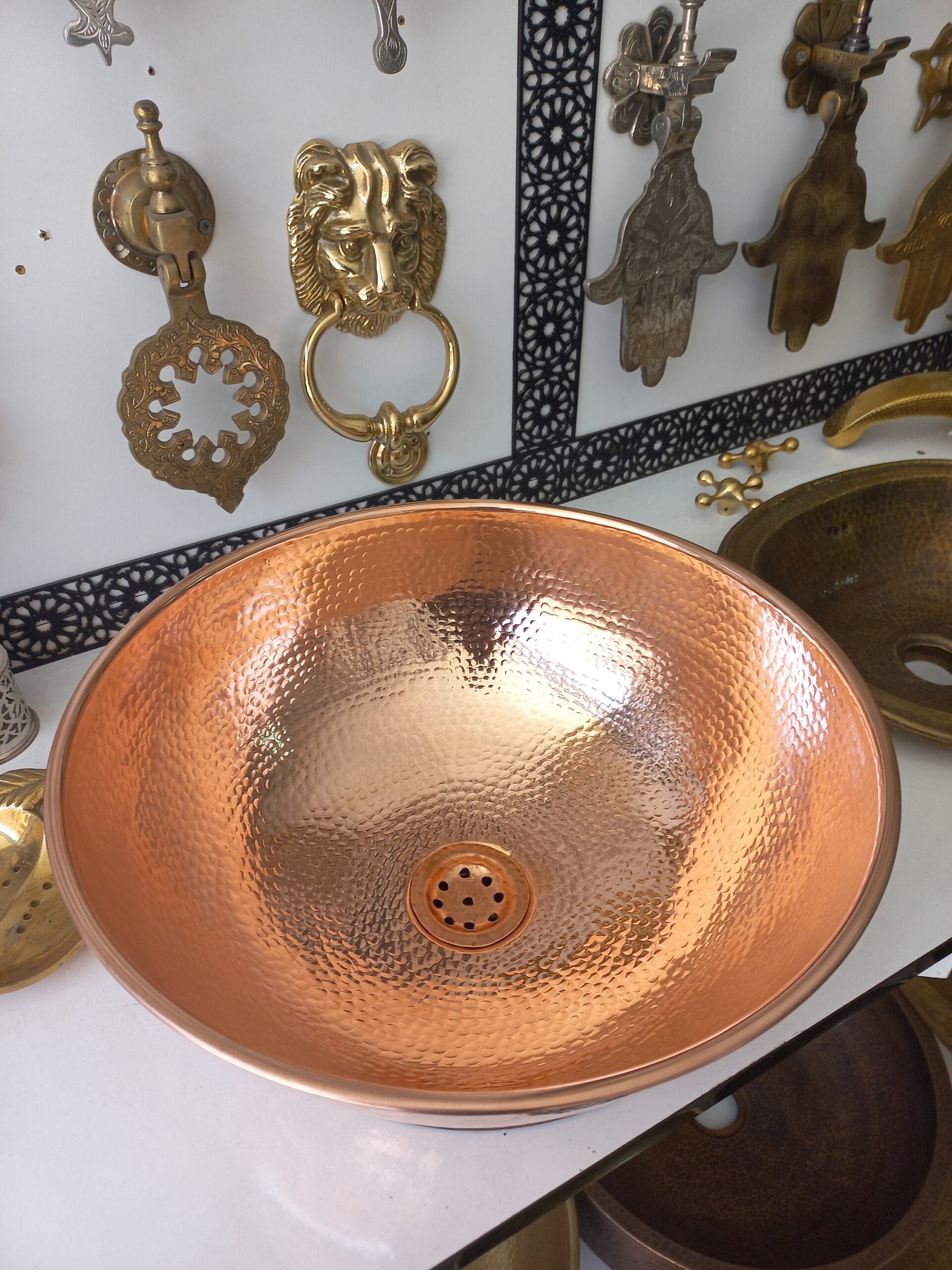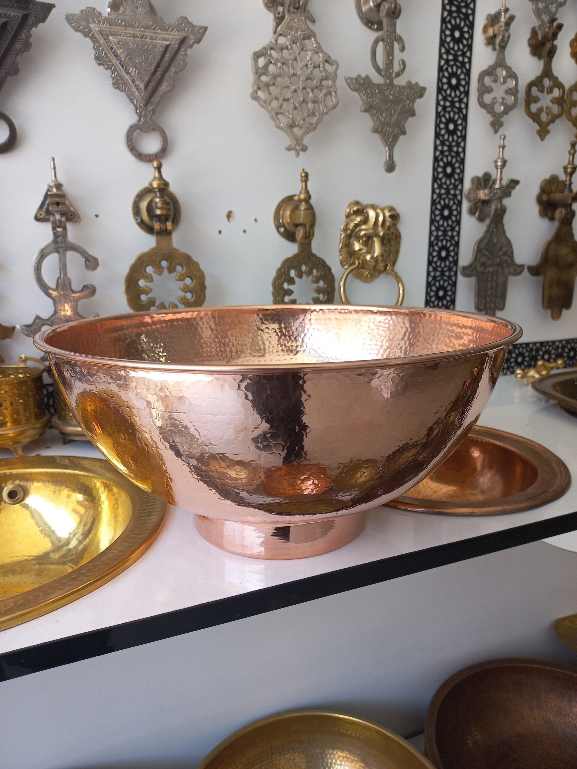 - Round hammered copper sink for bathroom-Farmhouse Sink-Handmade vessel washbasin-Antique red copper sink , copper drop in sink.
