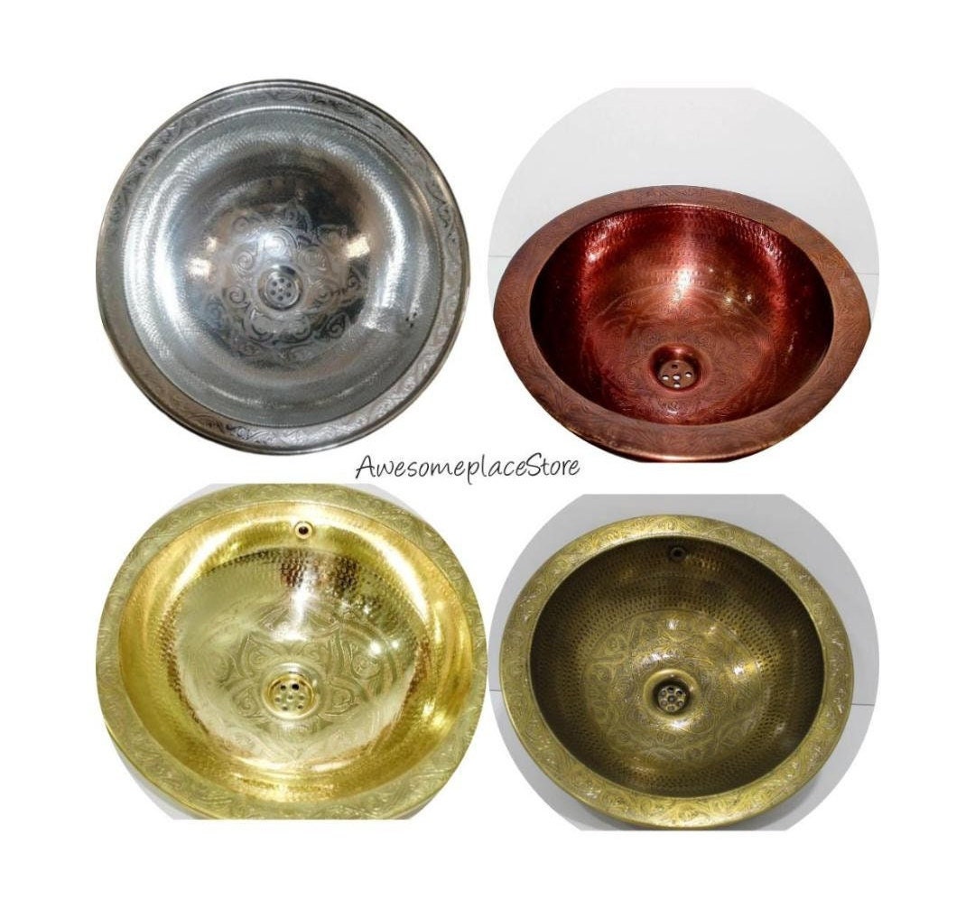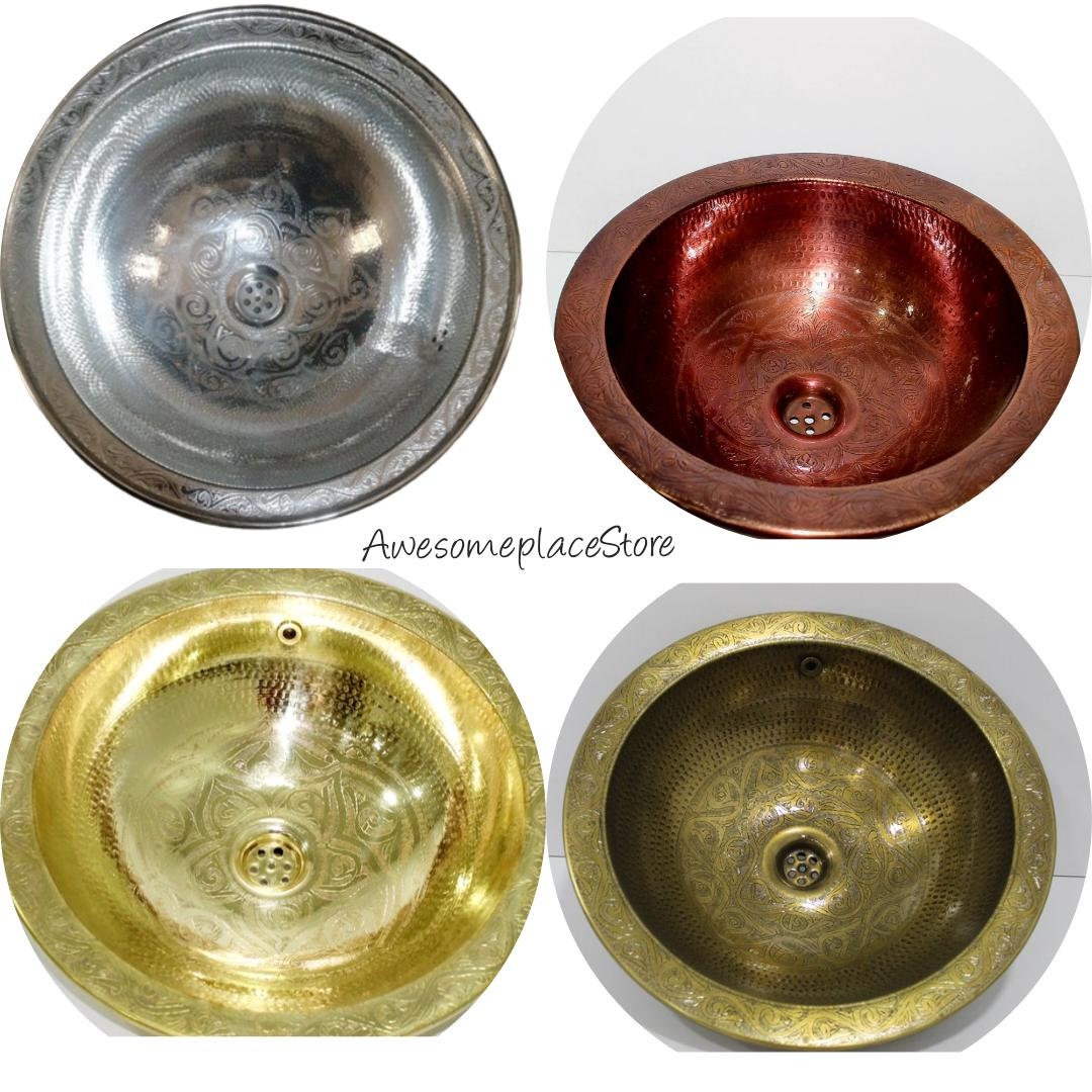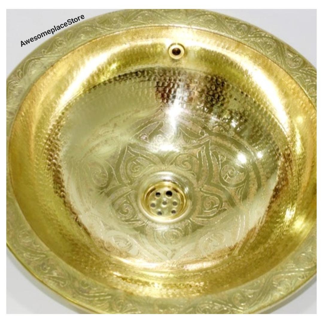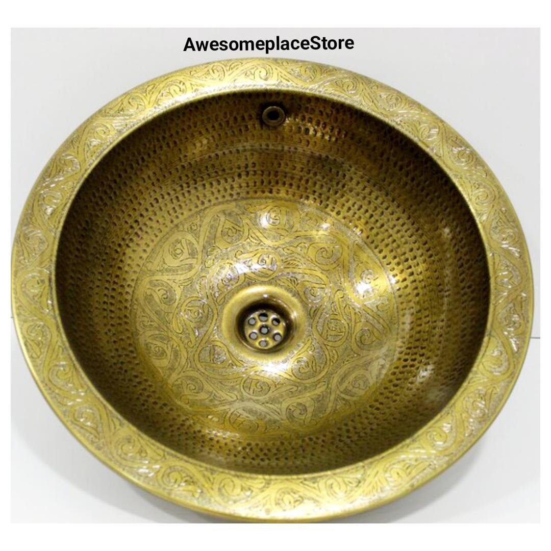 - Sink Brass Or Maroccan,Handmade round / oval gold tone hammered brass Moroccan sink, Moroccan bathroom decor, vintage style brass sink.