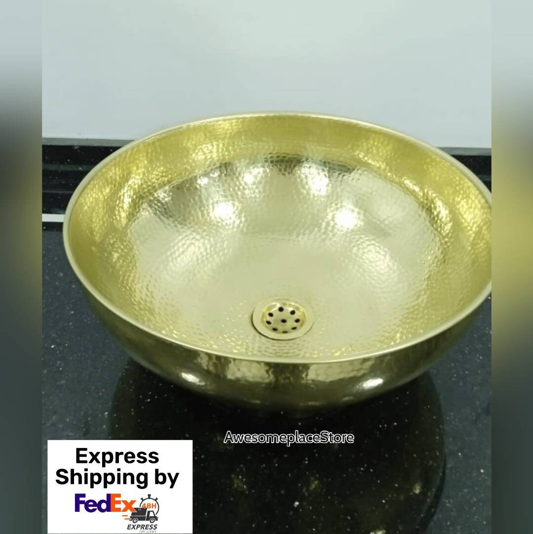 - Round hammered copper sink for bathroom-Farmhouse Sink-Handmade vessel washbasin-Antique red copper sink , copper drop in sink.