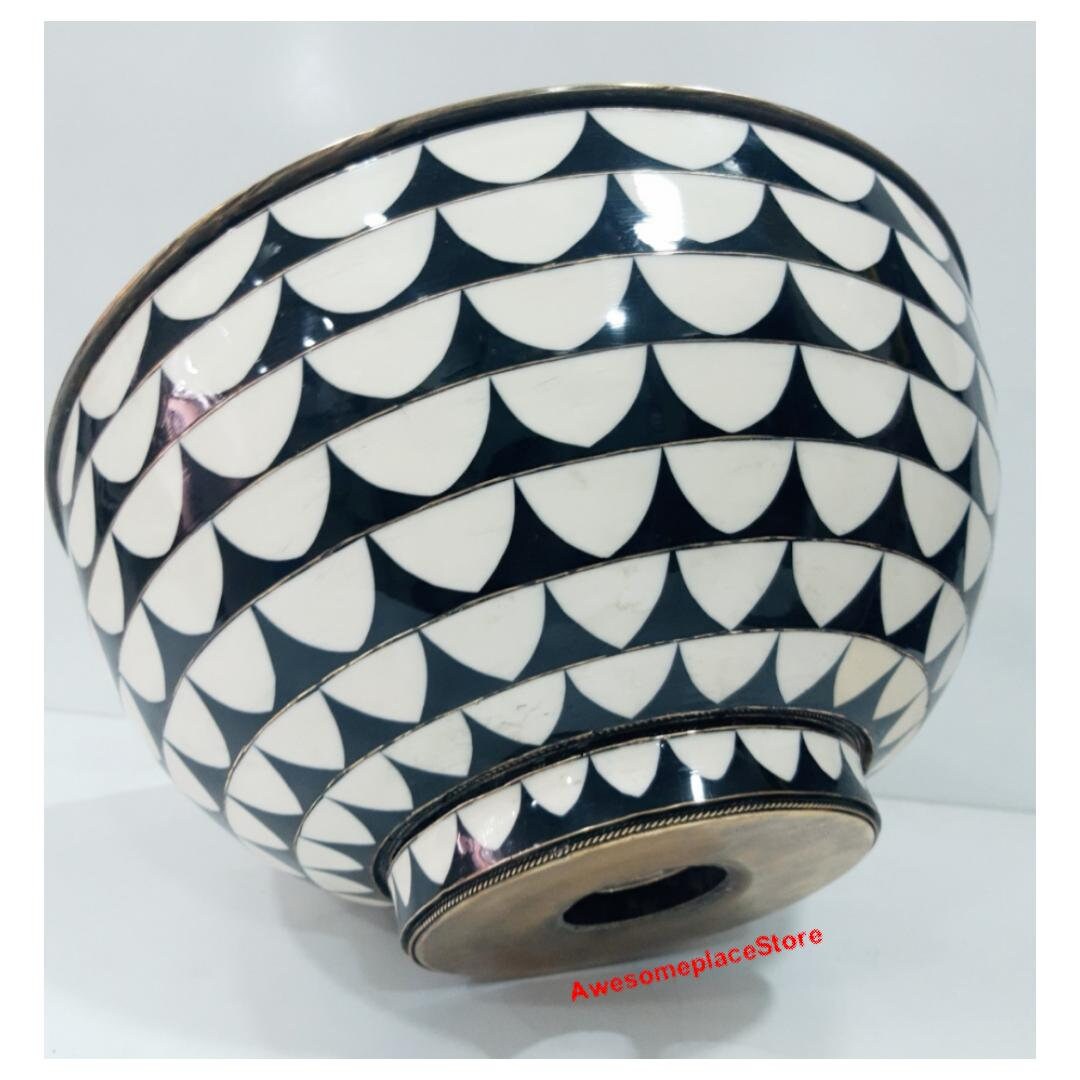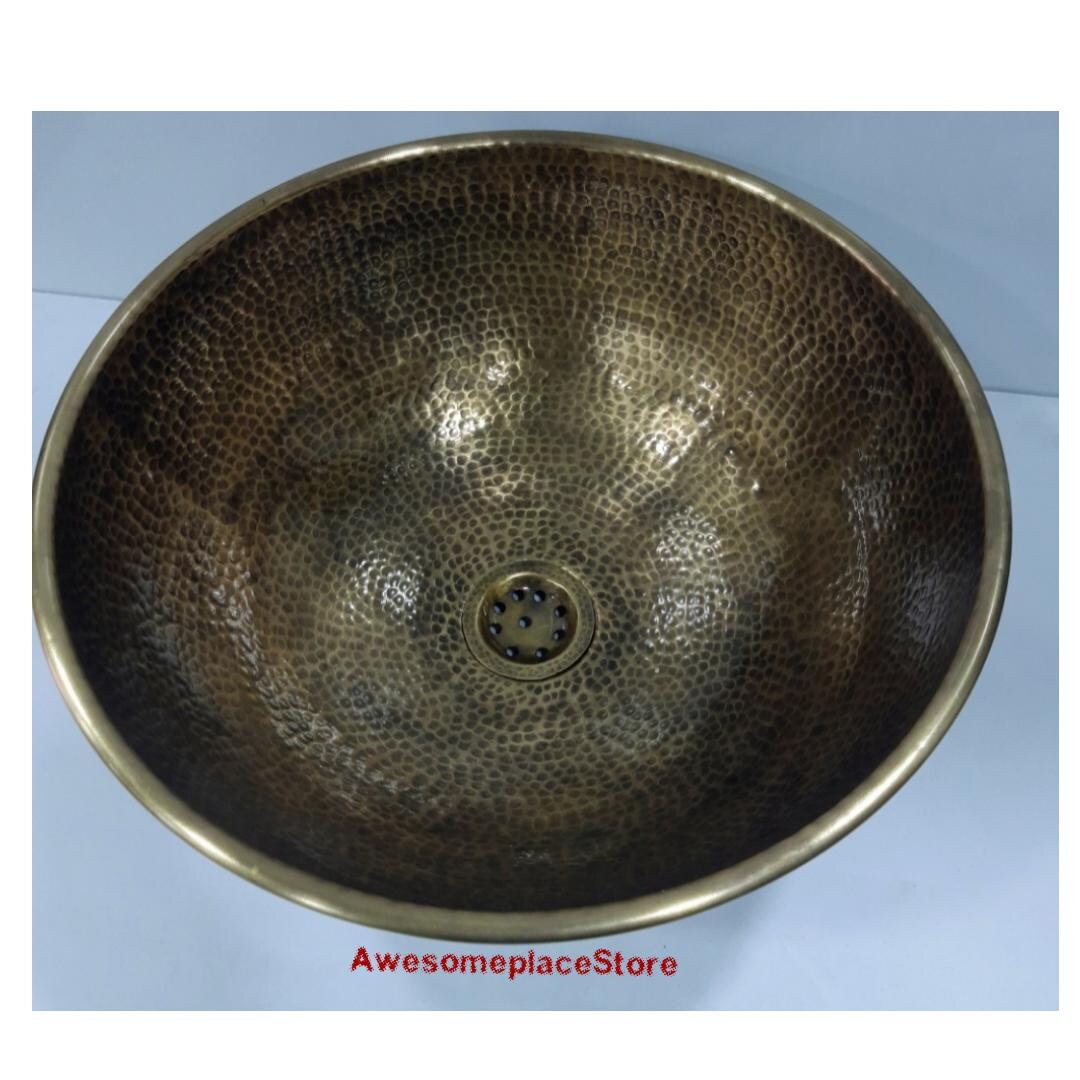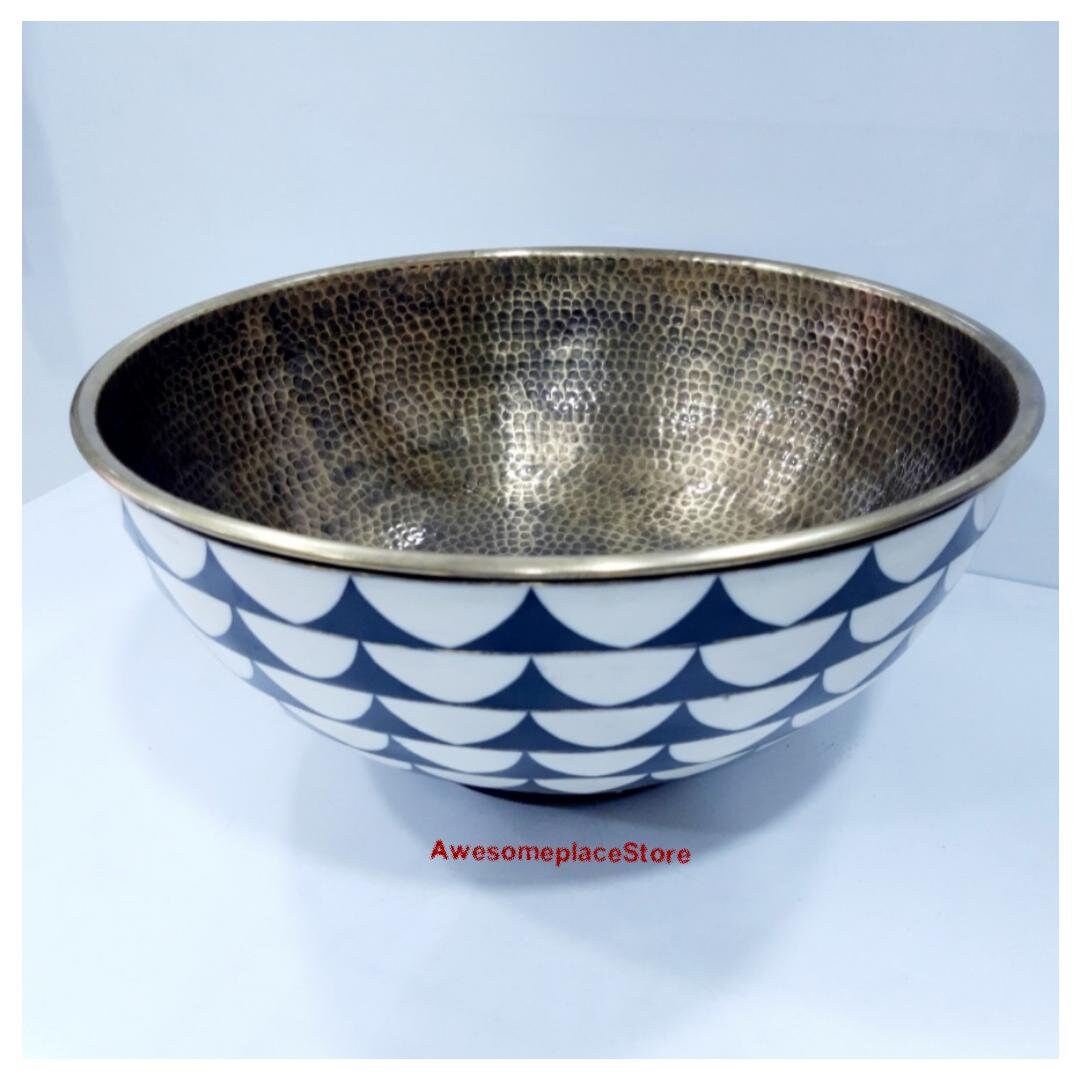 - This vanity sink is Made of a thick plate of unlacquered solid brass and shaped by hammer, and then engraved by our master craftsman, studded with black and white bones to add luxury to the bowl sink, It gives a touch of Moroccan and Andalusian style to your bathroom.