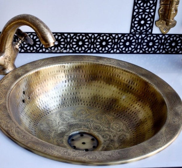 - This sink hammered, engraved and handcrafted by talented artisans in the city of Marrakech.