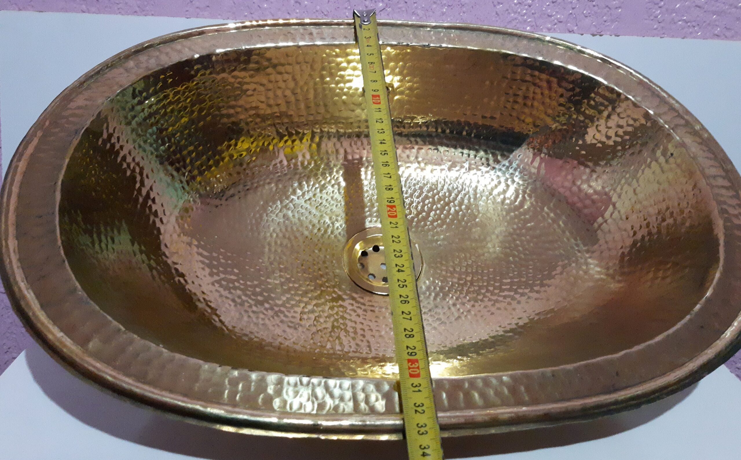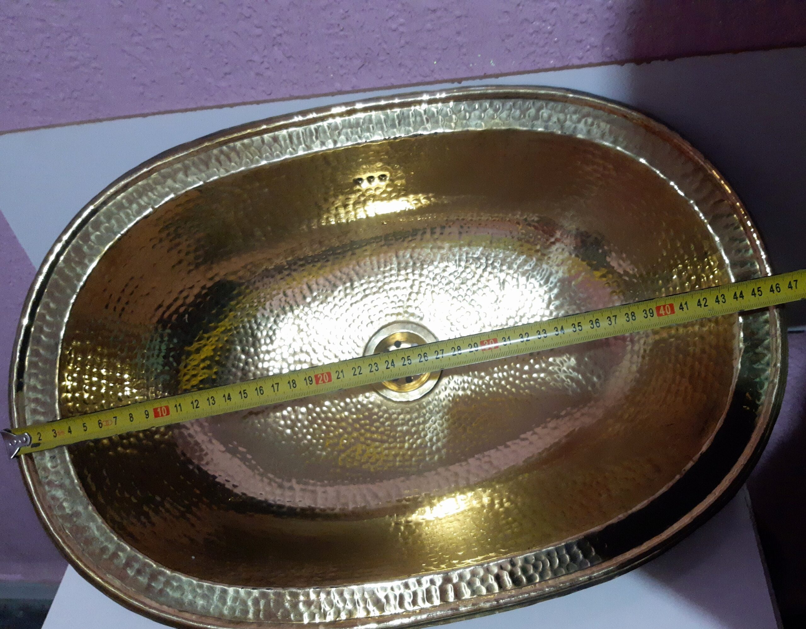 - Évier ovale en laiton, lavabo rond vintage en laiton marocain martelé à la main, évier artisanal au design marocain