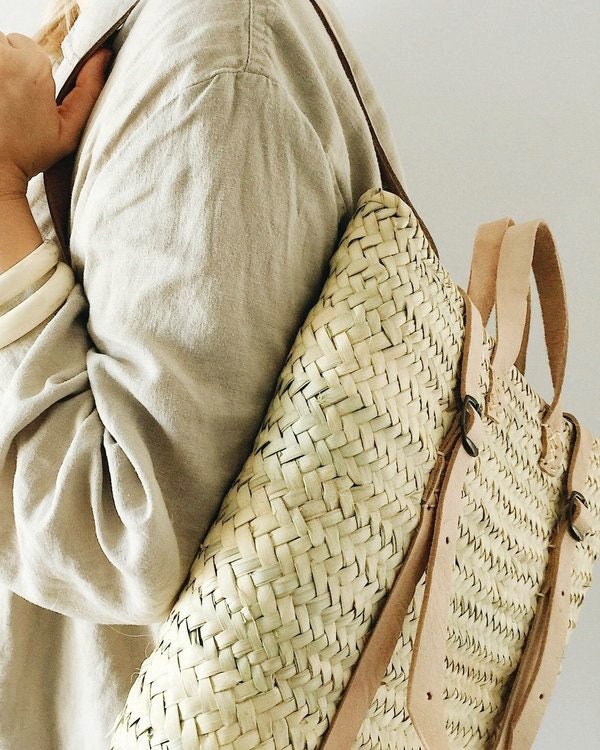 - Vous êtes à la recherche d’un sac à dos Hipster ou d’un sac à dos bohème ? Une fois que vous avez mis la main sur ce sac à dos en paille, vous voulez l’emporter partout! Marché, plage, shopping ou festival de musique. Ce panier tissé à base de feuilles de palmier et bracelet en cuir par des artisans marocains à Marrakech est à l’origine du sac à dos en toile.