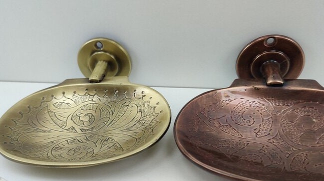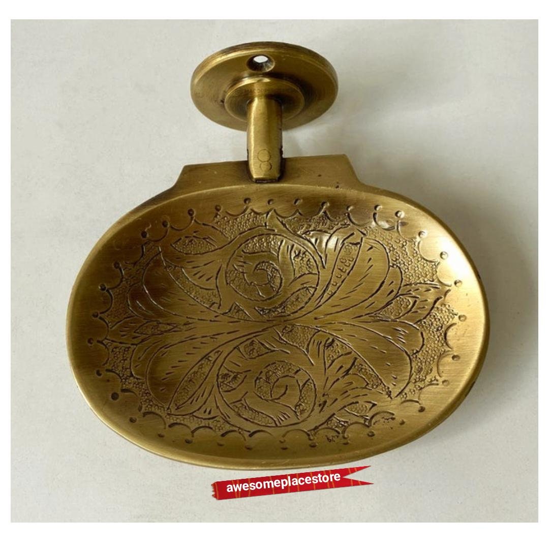 - support de savon en laiton fait main Porte-savon mur marocain gravé Plateau de savon en laiton Laiton en couleur or