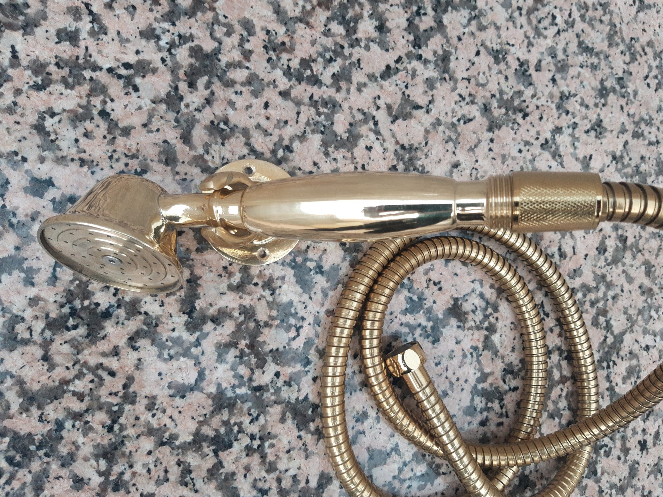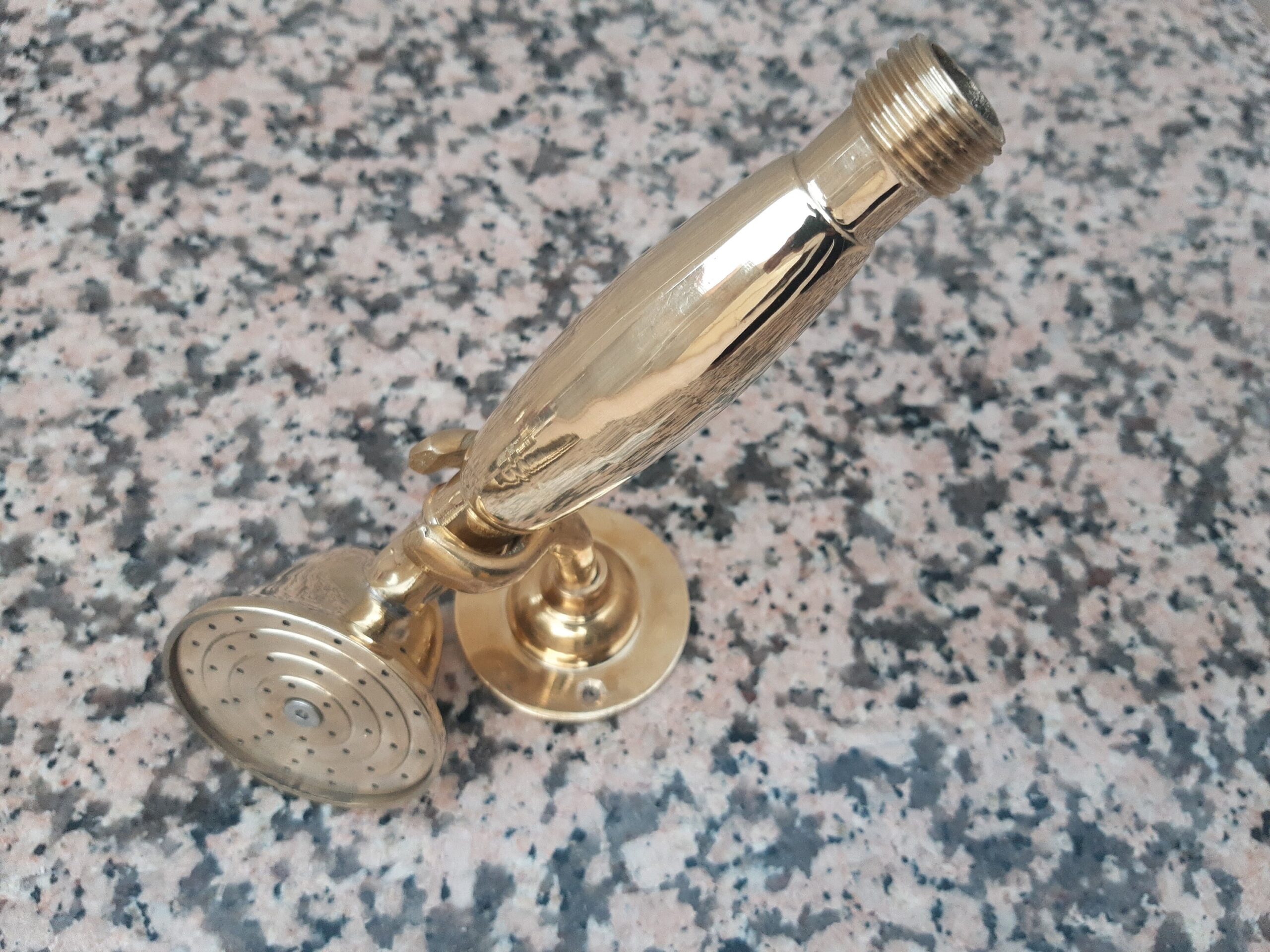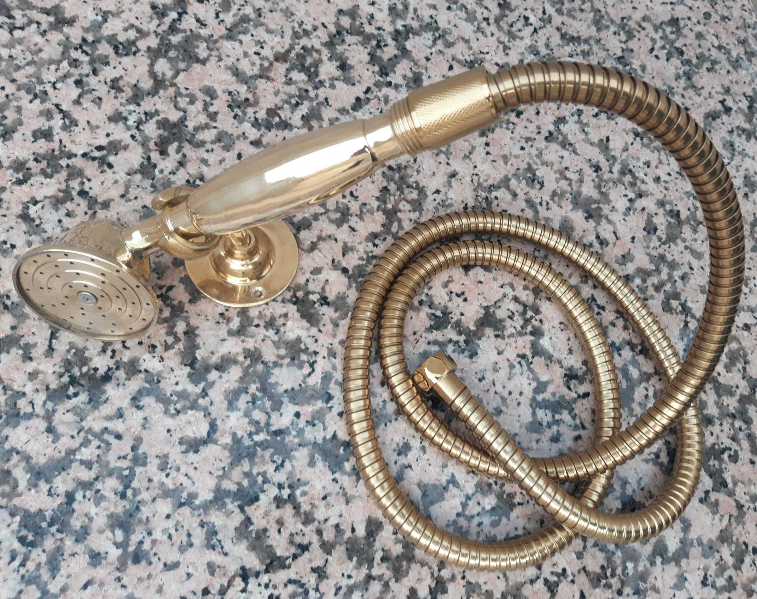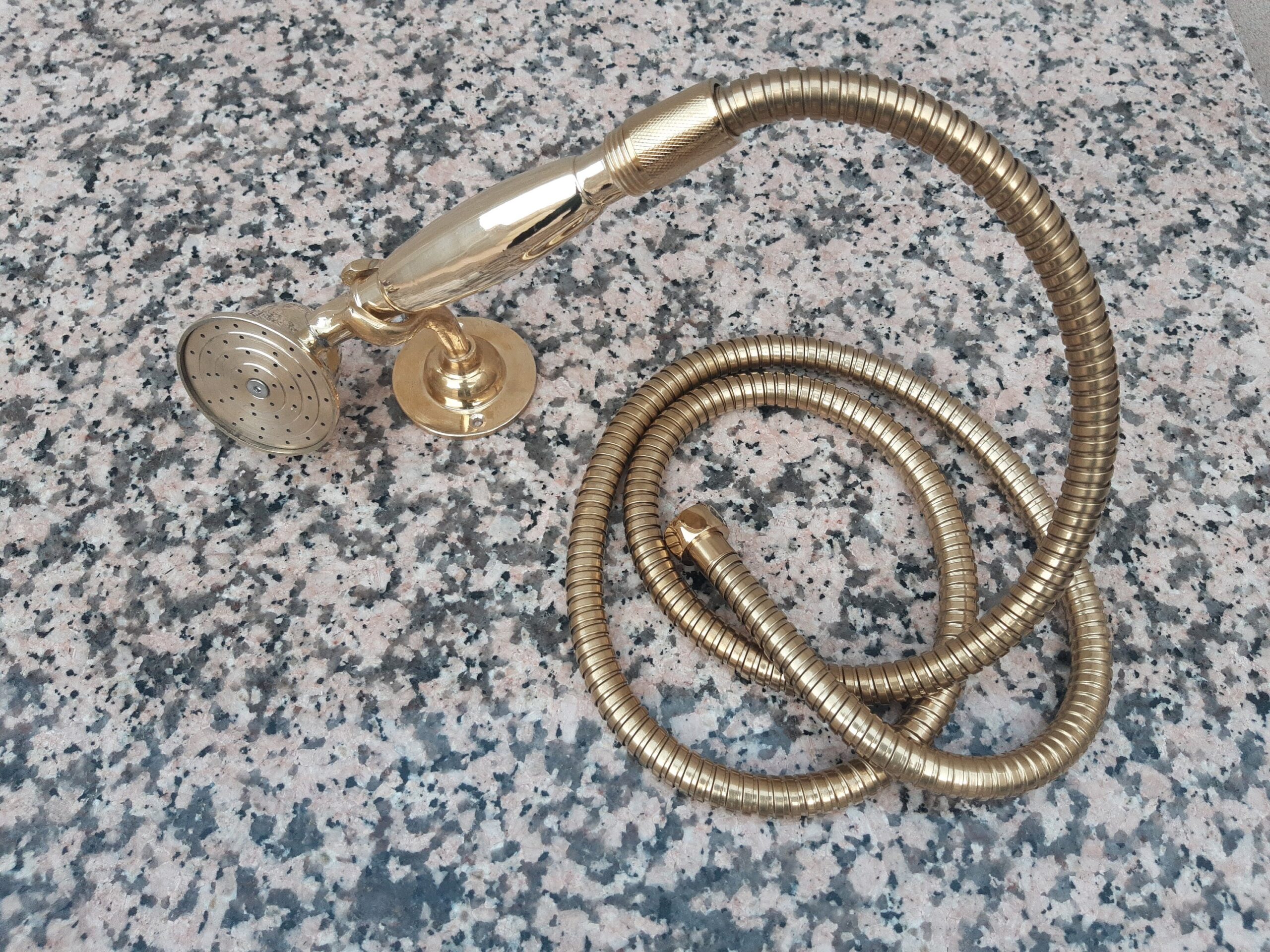 - This traditional non-lacquered brass shower faucet with portable handcrafted by our artisans, its color and brass design bring a bit of rustic style and class to your bathroom.