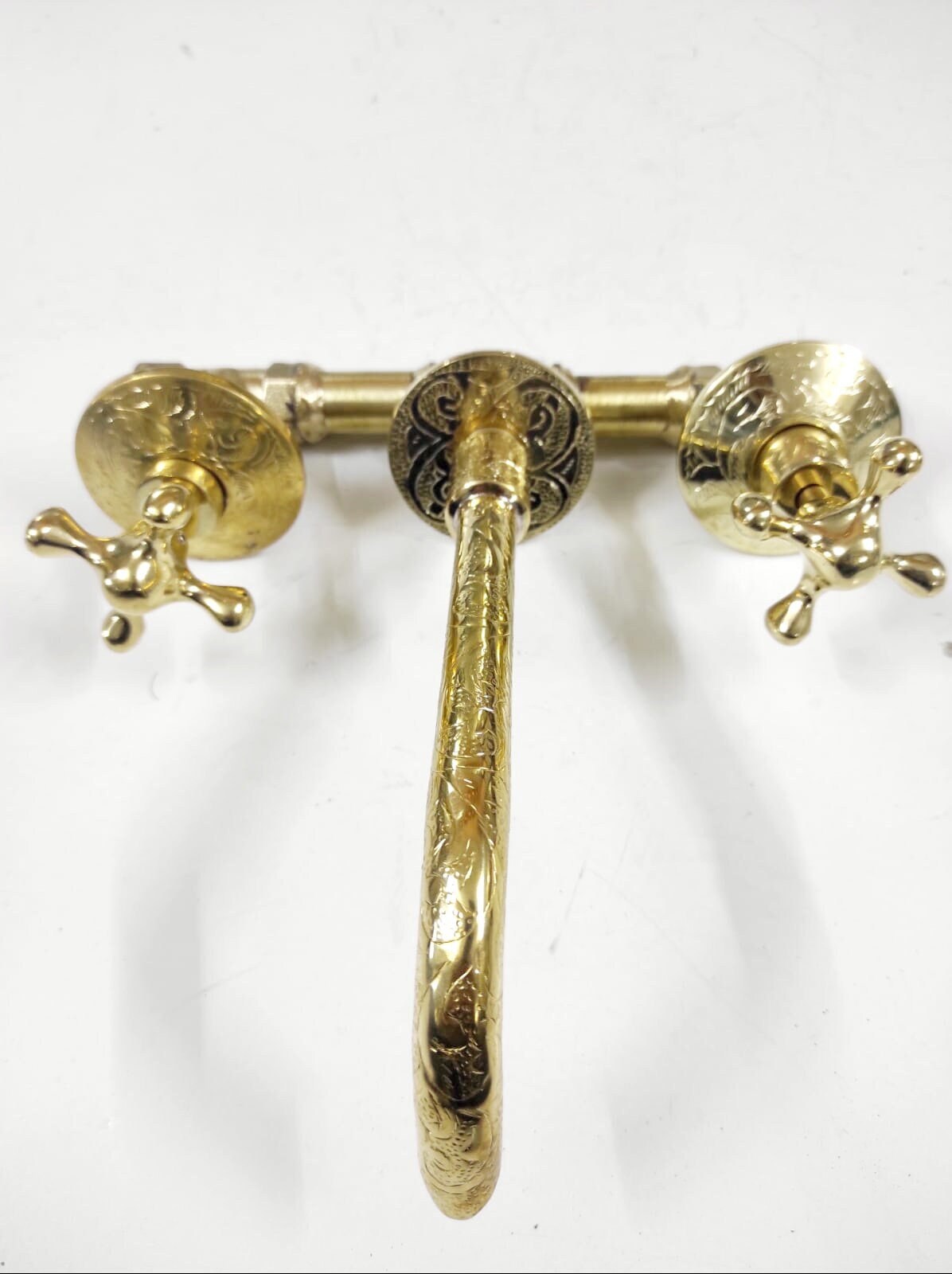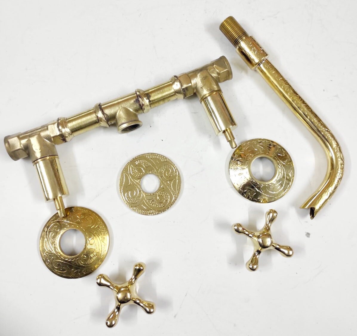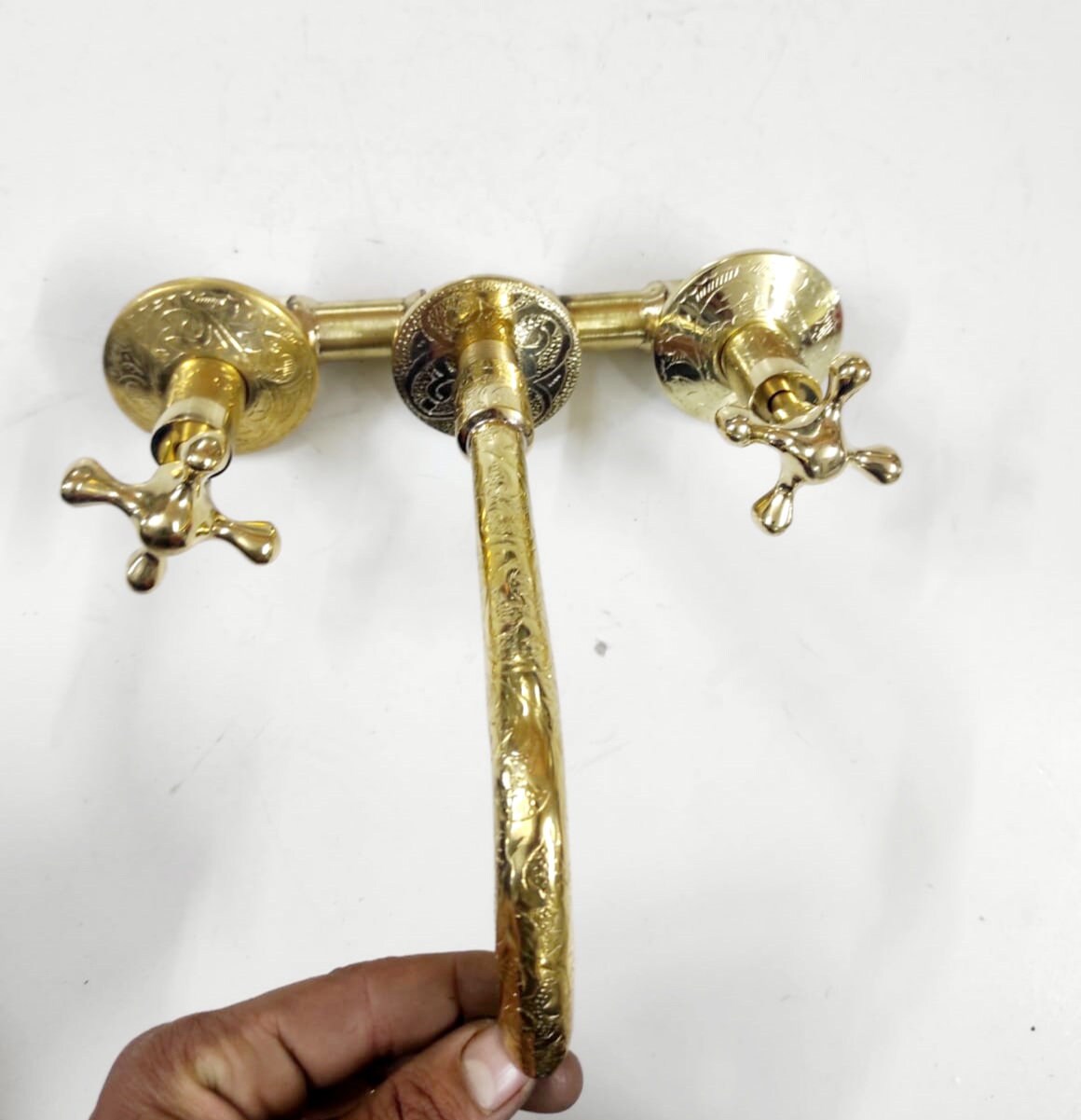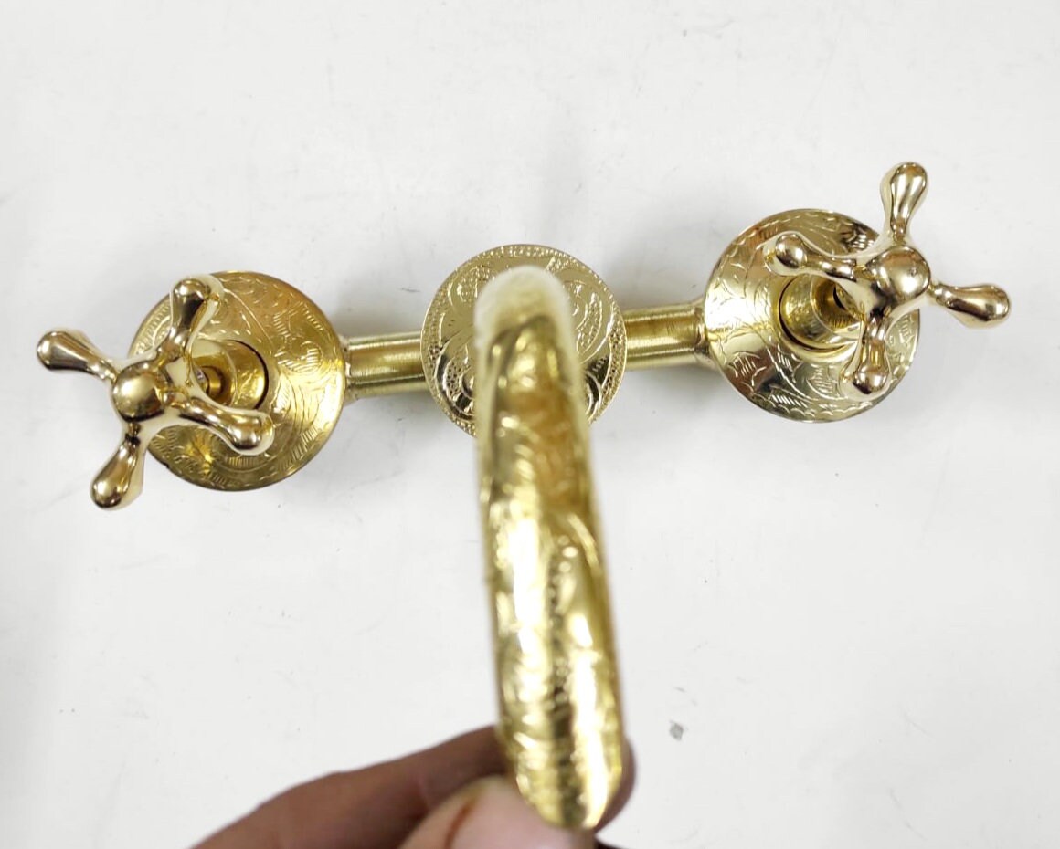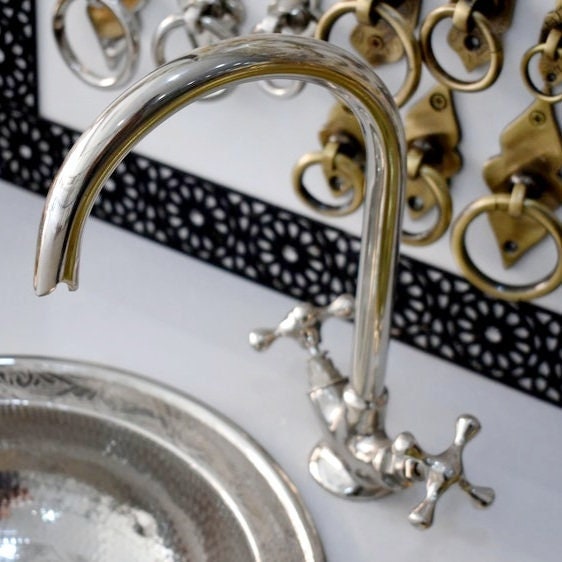 - Kitchen faucet,sprayer,bridge faucet,gold kitchen faucet,3 hole faucet,brass faucet,faucet set,gooseneck faucet,farmhouse,vintage faucet,Unlacquered Brass