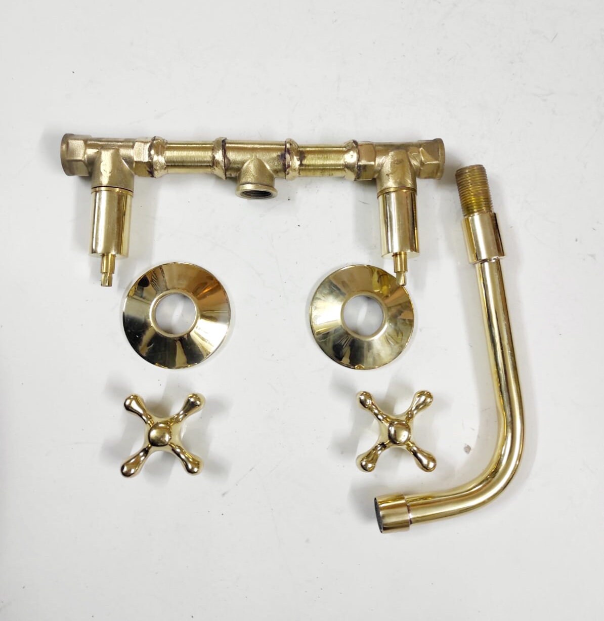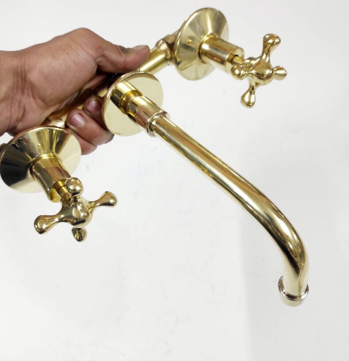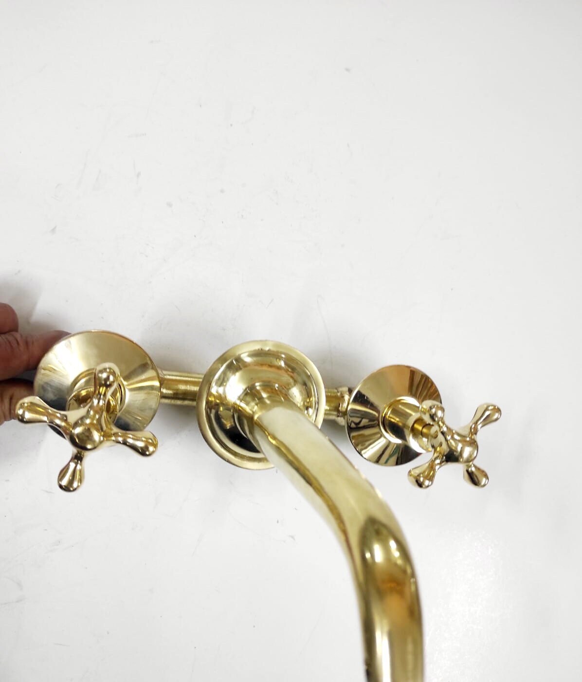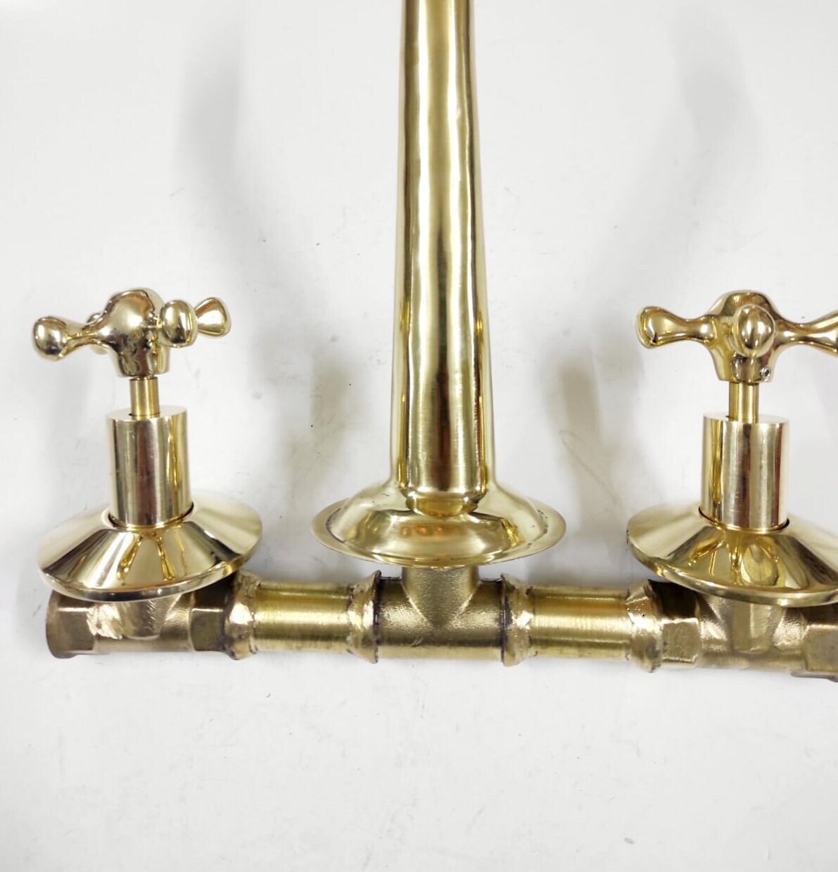 - Kitchen faucet,sprayer,bridge faucet,gold kitchen faucet,3 hole faucet,brass faucet,faucet set,gooseneck faucet,farmhouse,vintage faucet,Unlacquered Brass