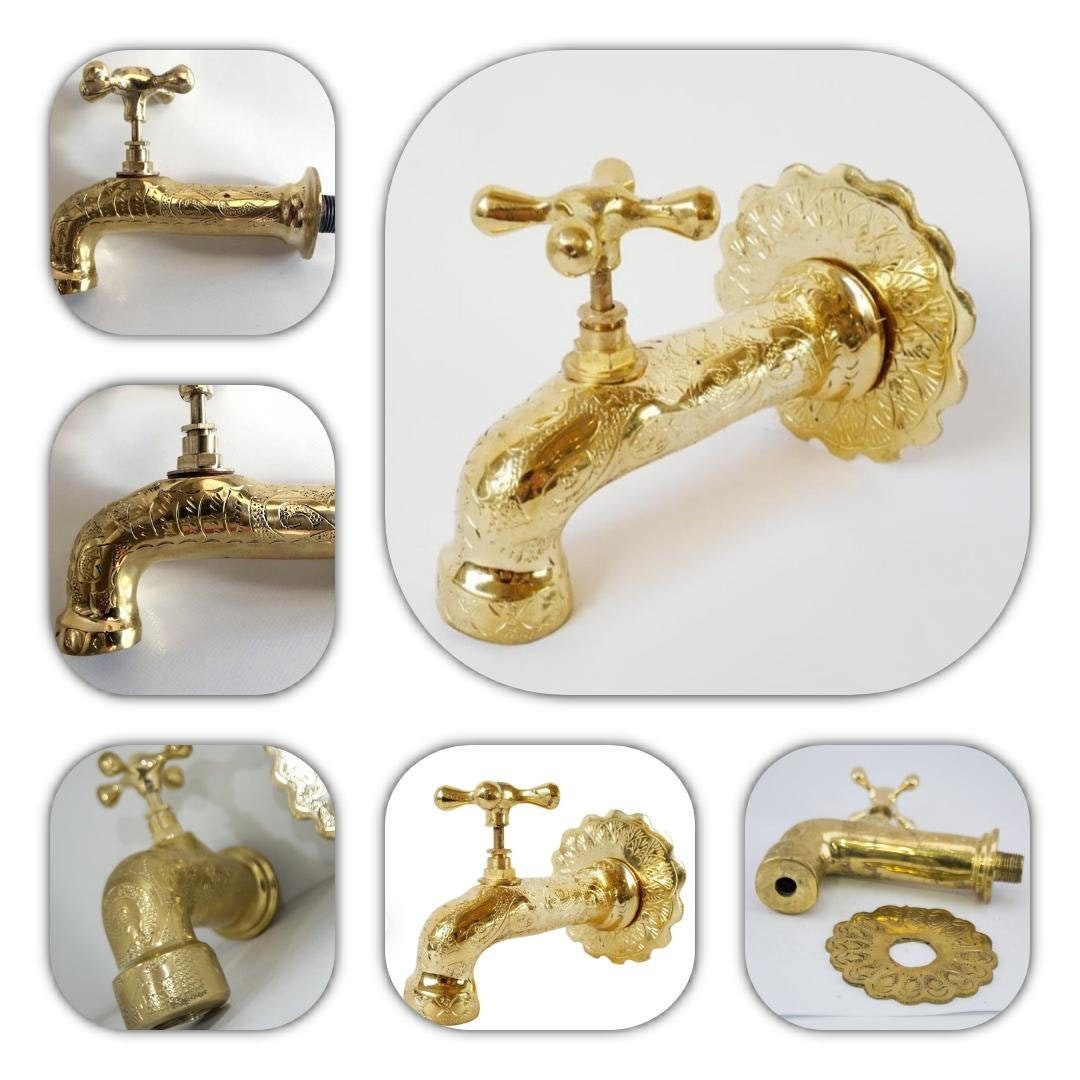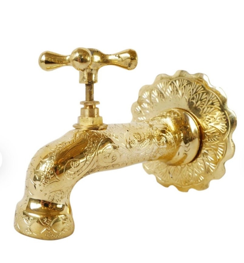 - Vintage brass water tap for garden-Wall mounted water tap in solid brass.