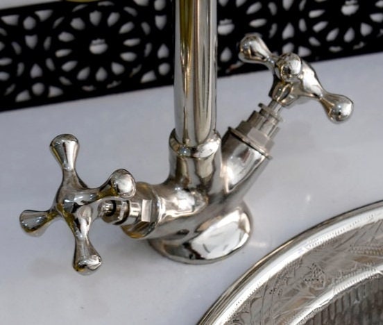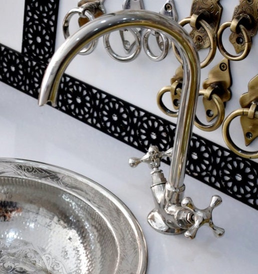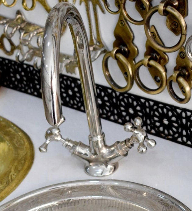 - Robinet en col de cygne en Solid Brass non laqué fabriqué à la main pour un look vintage vieilli. Fabriqué à Marrakech par des artisans passionnés et une excellente finition.