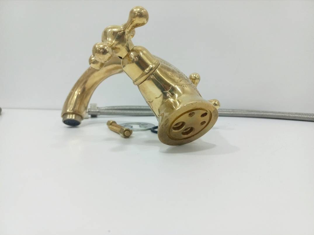 - Kitchen faucet,sprayer,bridge faucet,gold kitchen faucet,3 hole faucet,brass faucet,faucet set,gooseneck faucet,farmhouse,vintage faucet,Unlacquered Brass
