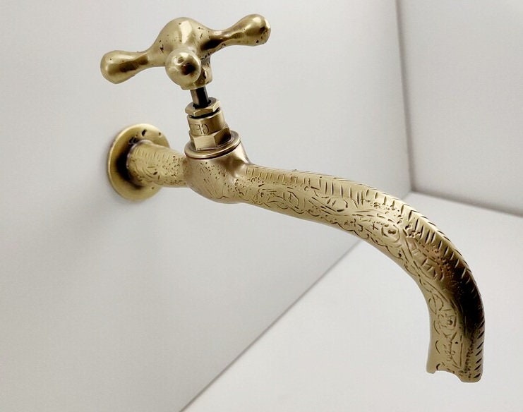 - Moroccan Wall Mounted engraved Handmade Faucet With Molded Handle Artisan Tap fountains outdoor faucet / tap