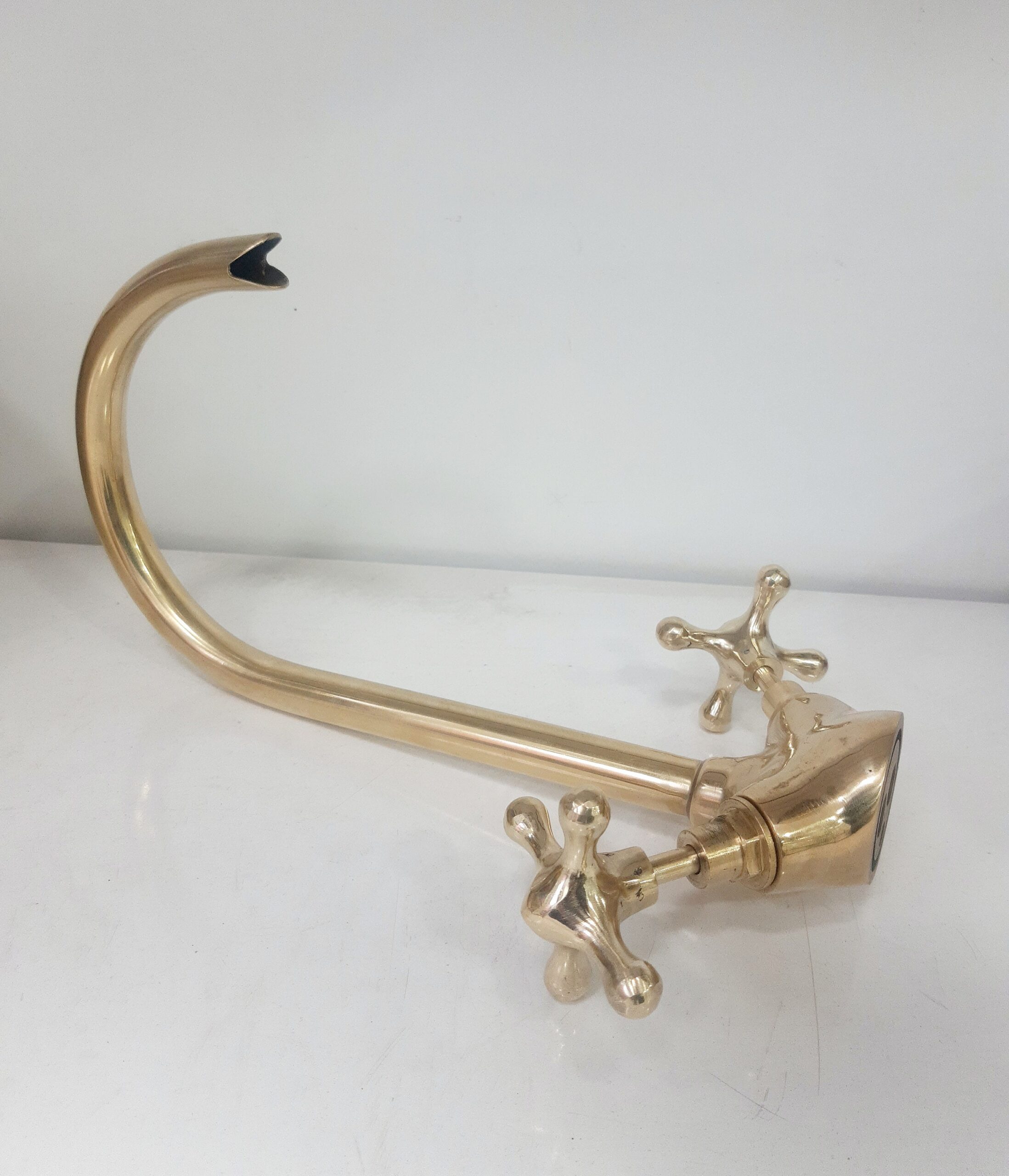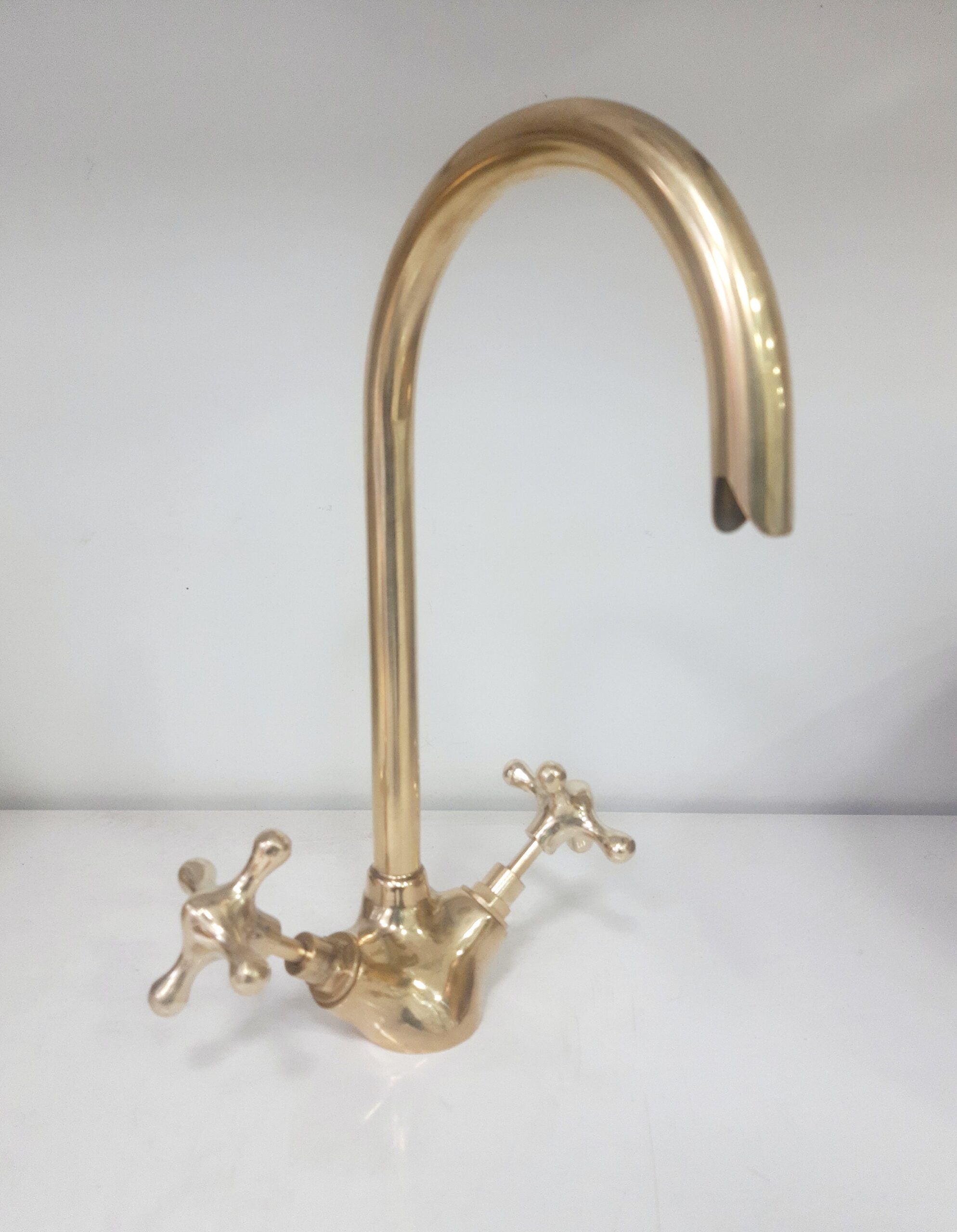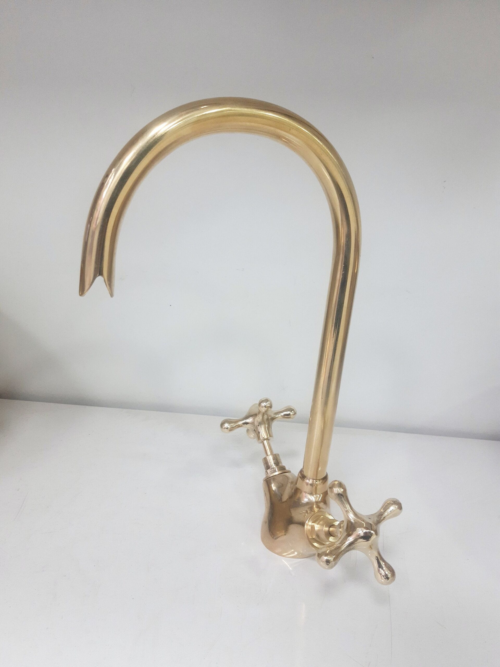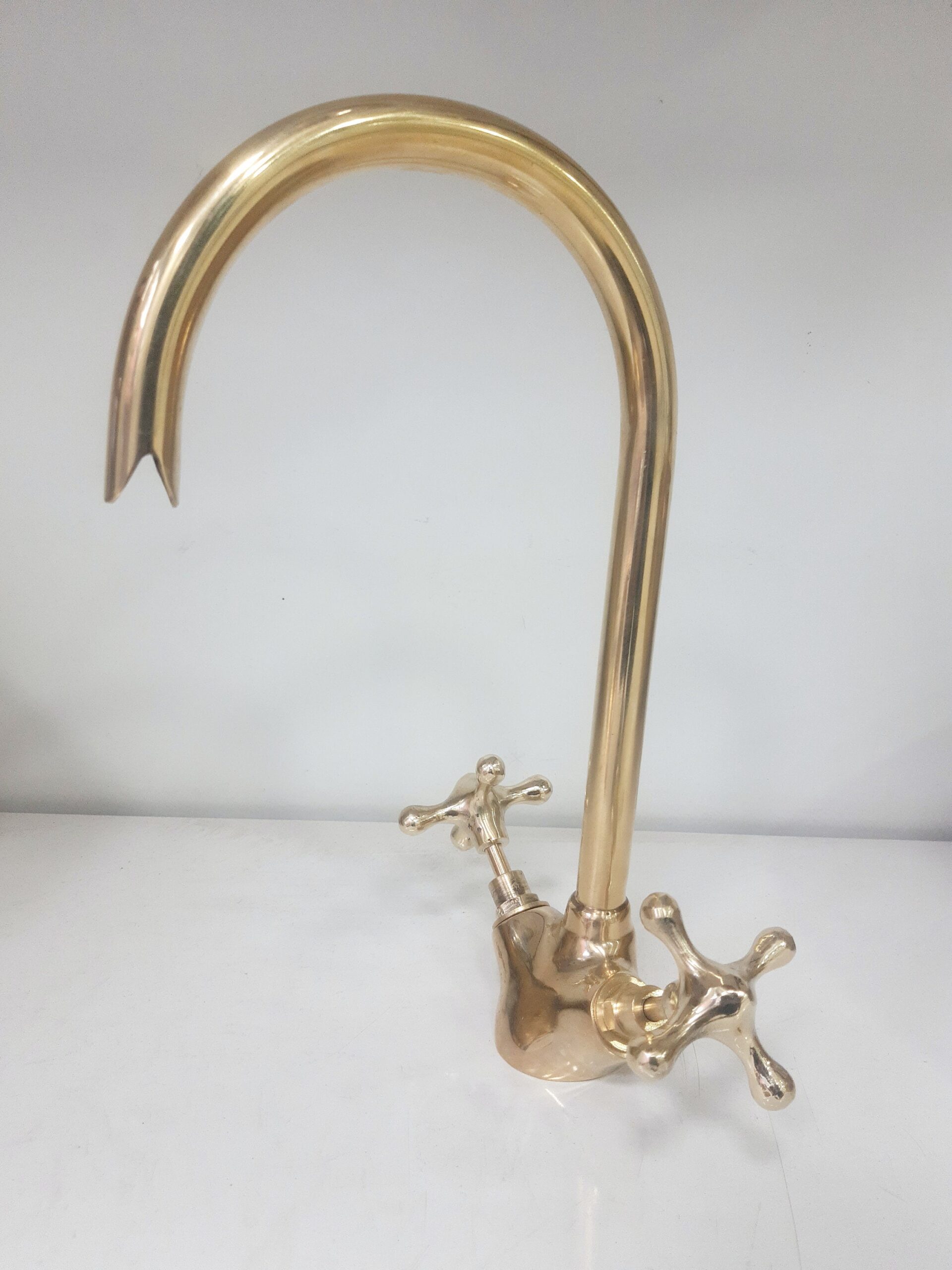 - Handcrafted unlacquered solid brass gooseneck faucet for an aged vintage look. Made in Marrakech by passionate artisans and excellent workmanship.