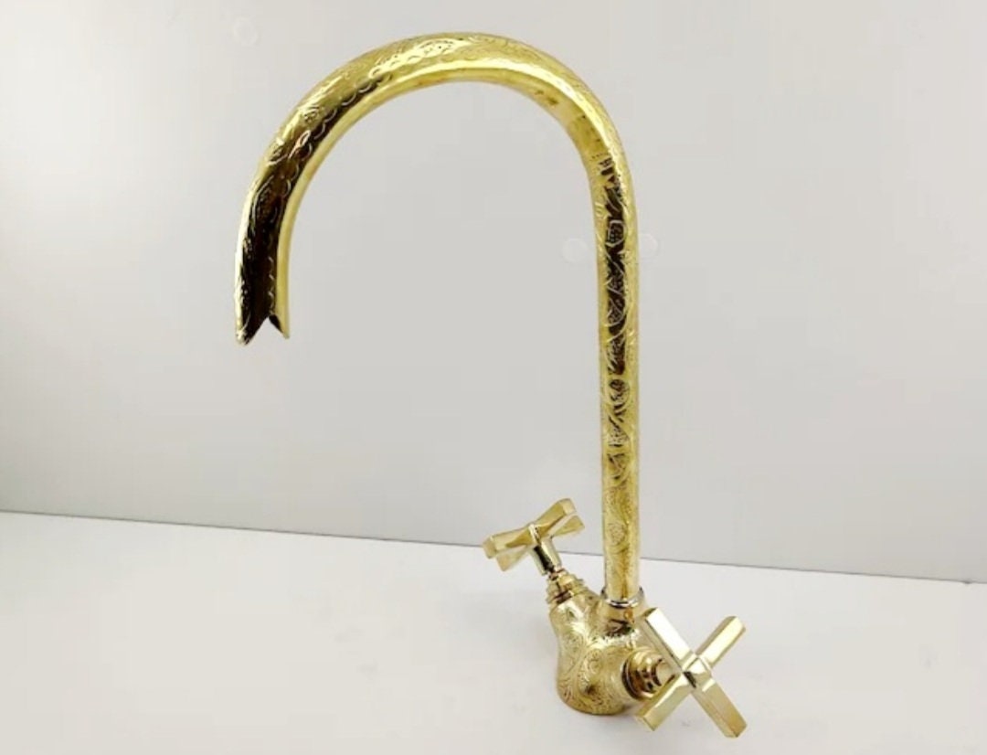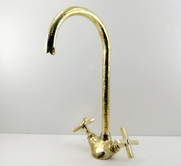 - Kitchen faucet,sprayer,bridge faucet,gold kitchen faucet,3 hole faucet,brass faucet,faucet set,gooseneck faucet,farmhouse,vintage faucet,Unlacquered Brass