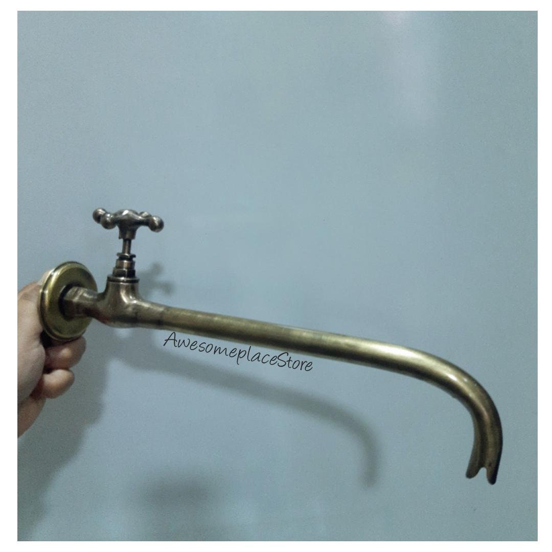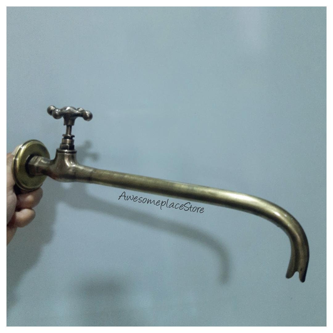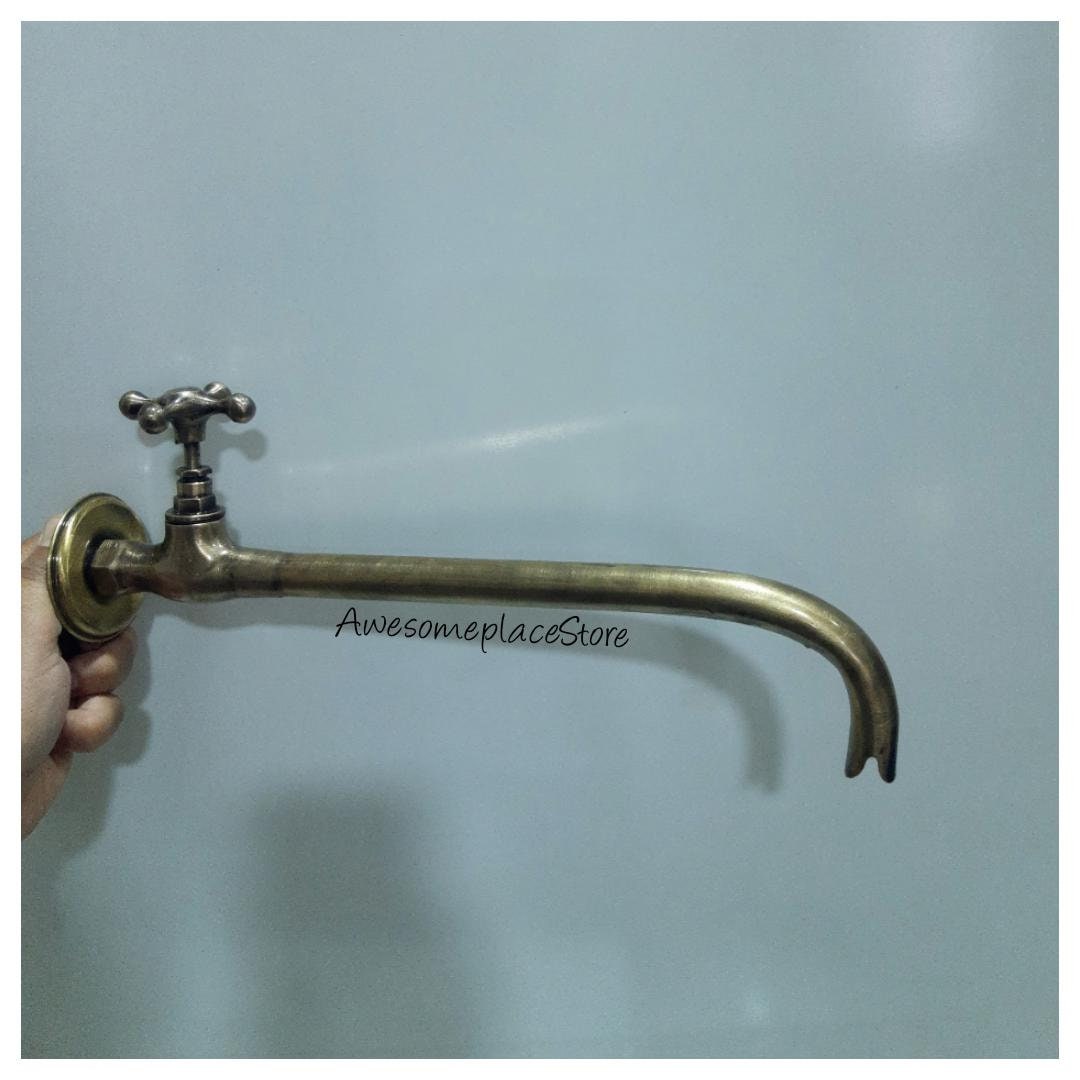 - Vintage brass water tap for garden-Wall mounted water tap in solid brass.