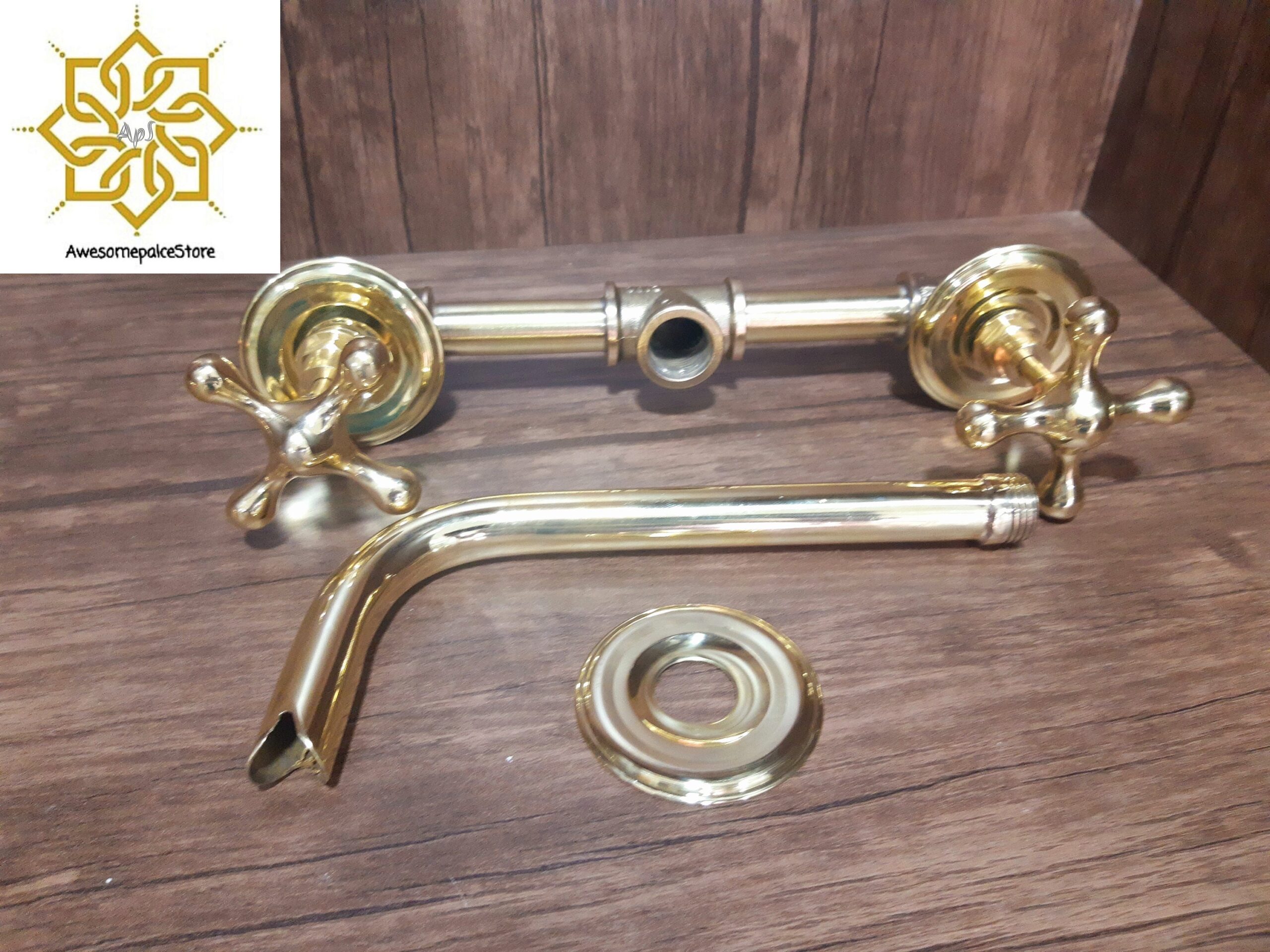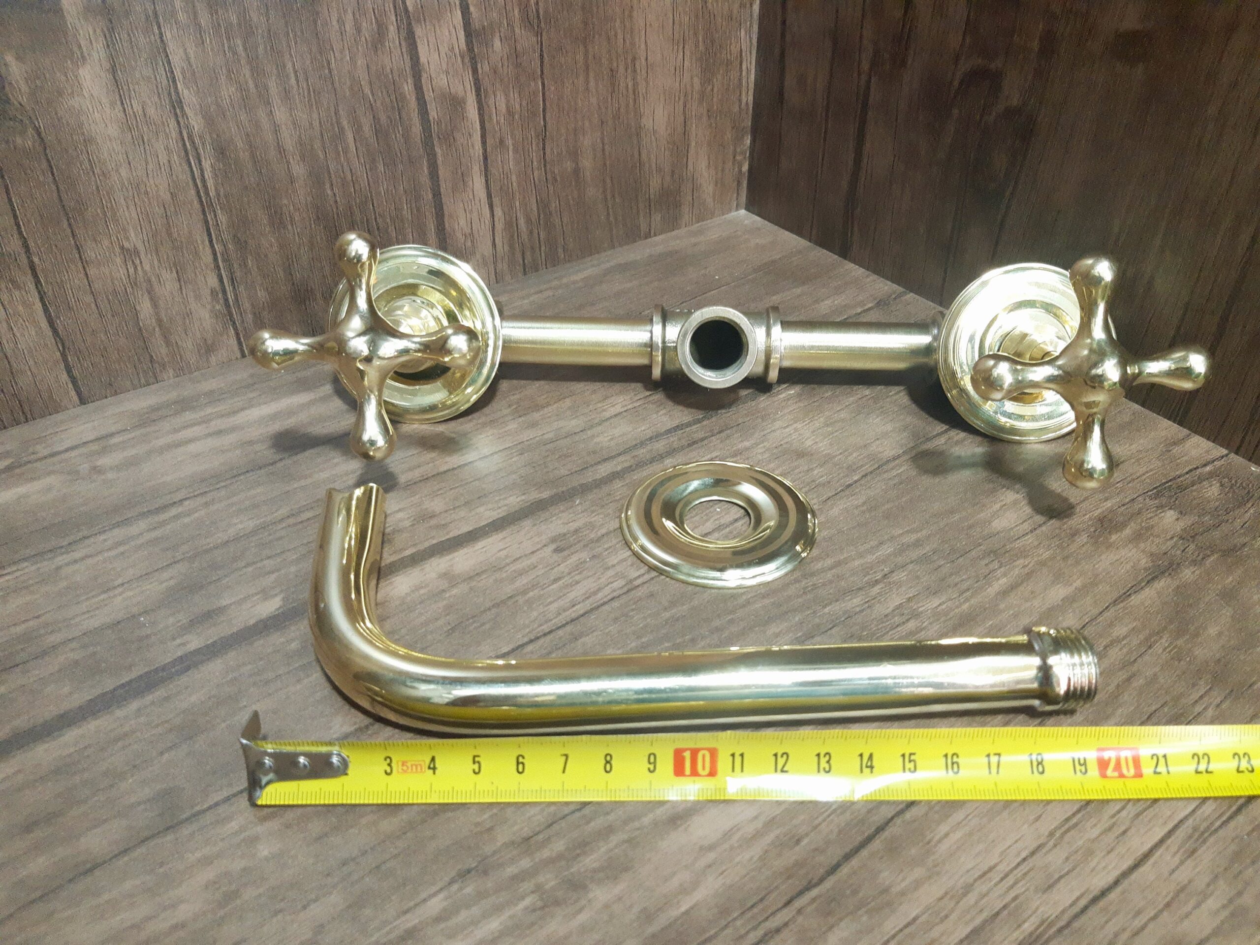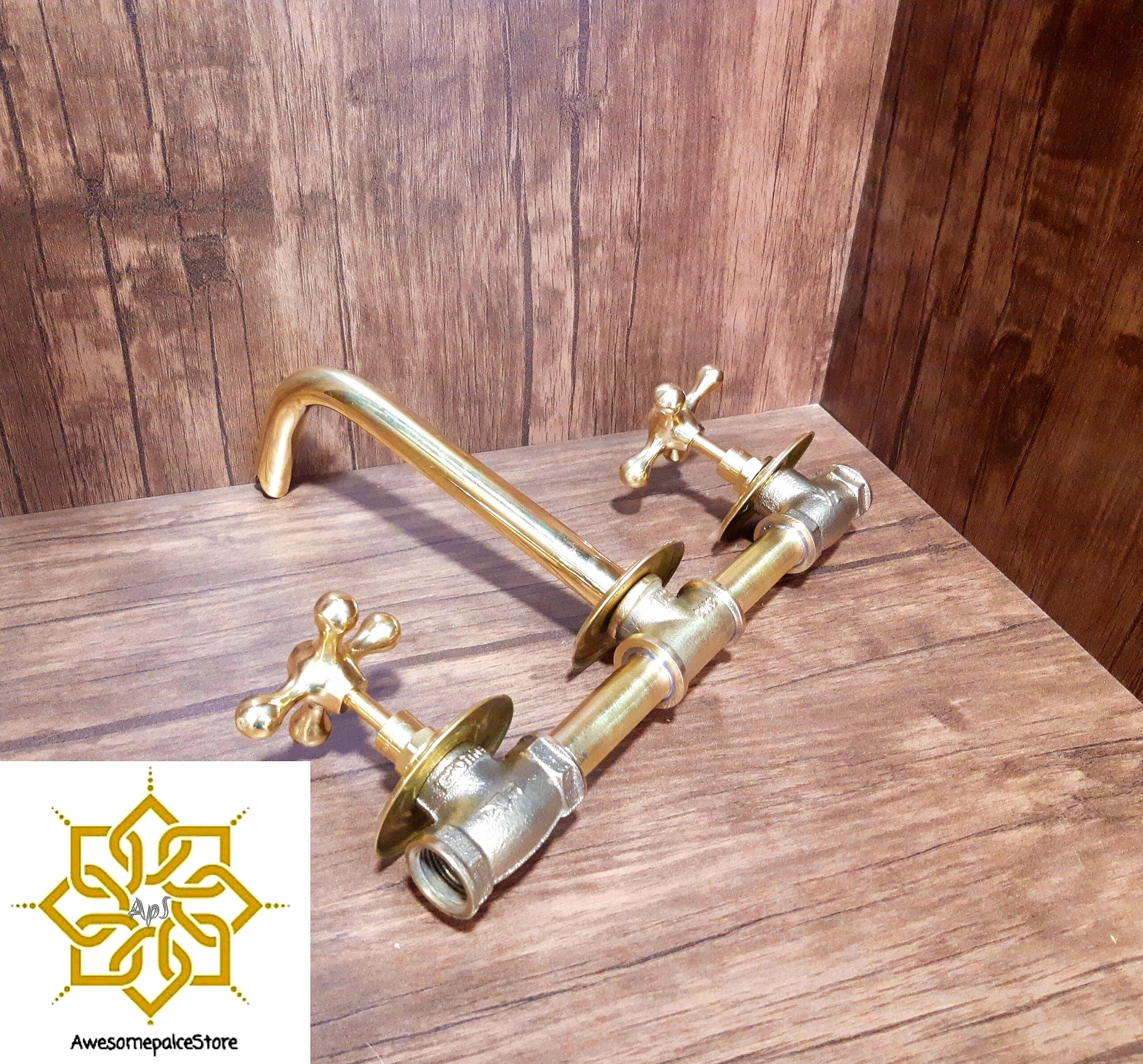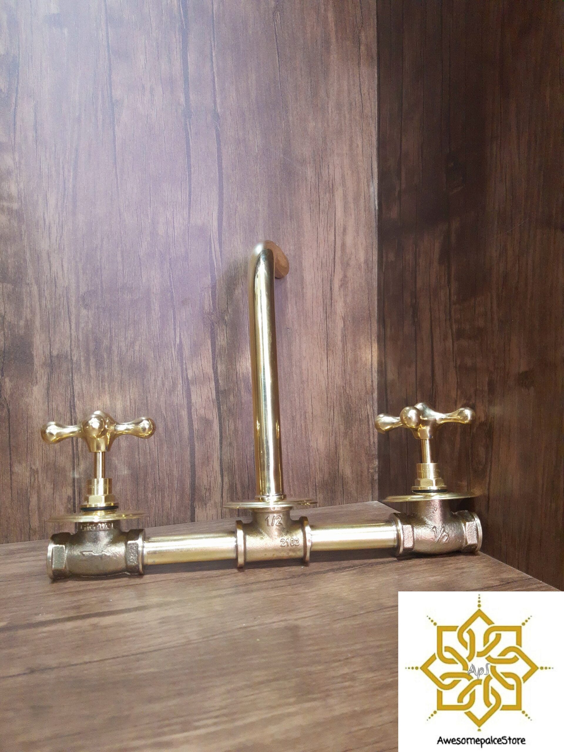 - Kitchen faucet,sprayer,bridge faucet,gold kitchen faucet,3 hole faucet,brass faucet,faucet set,gooseneck faucet,farmhouse,vintage faucet,Unlacquered Brass