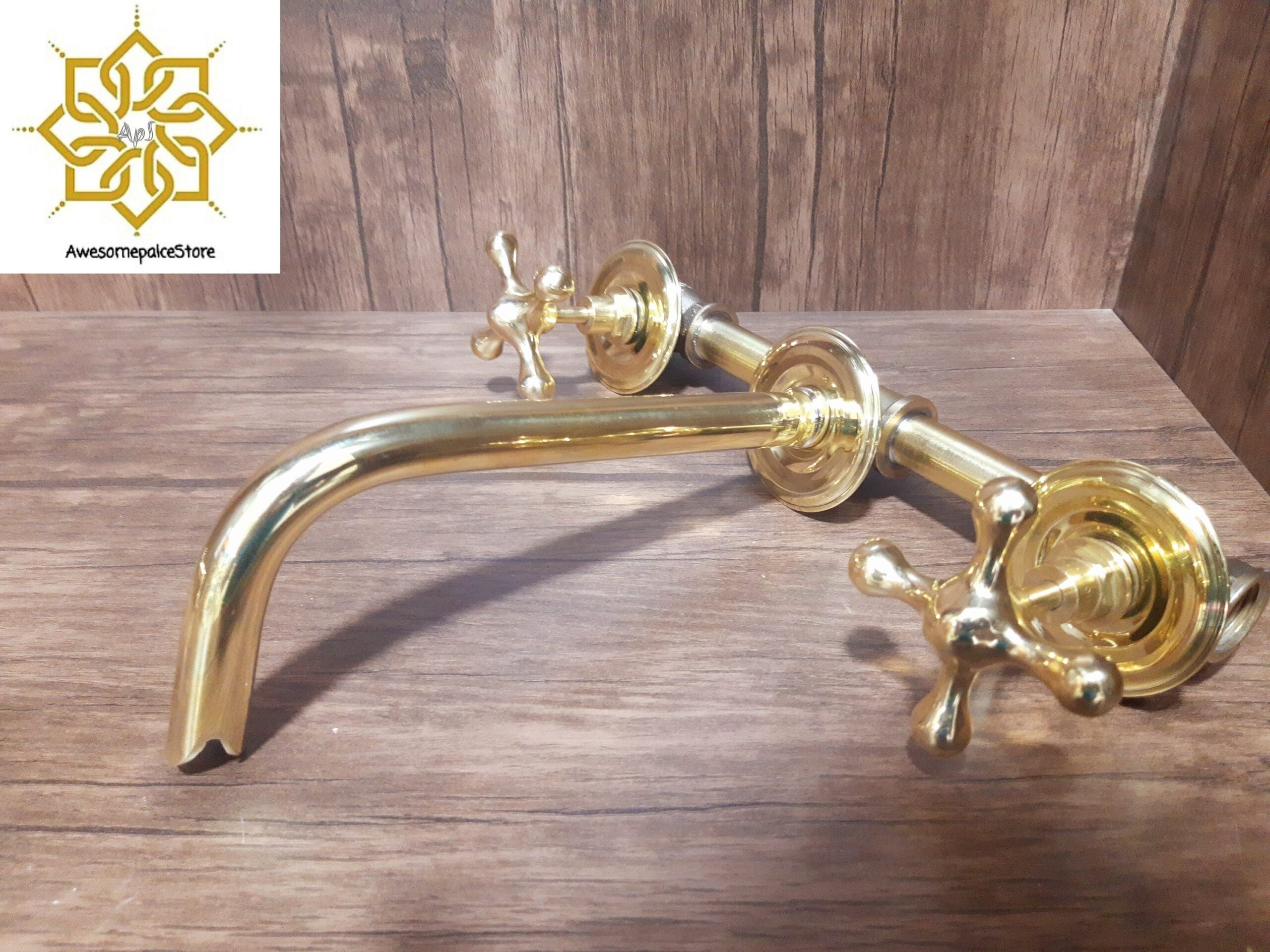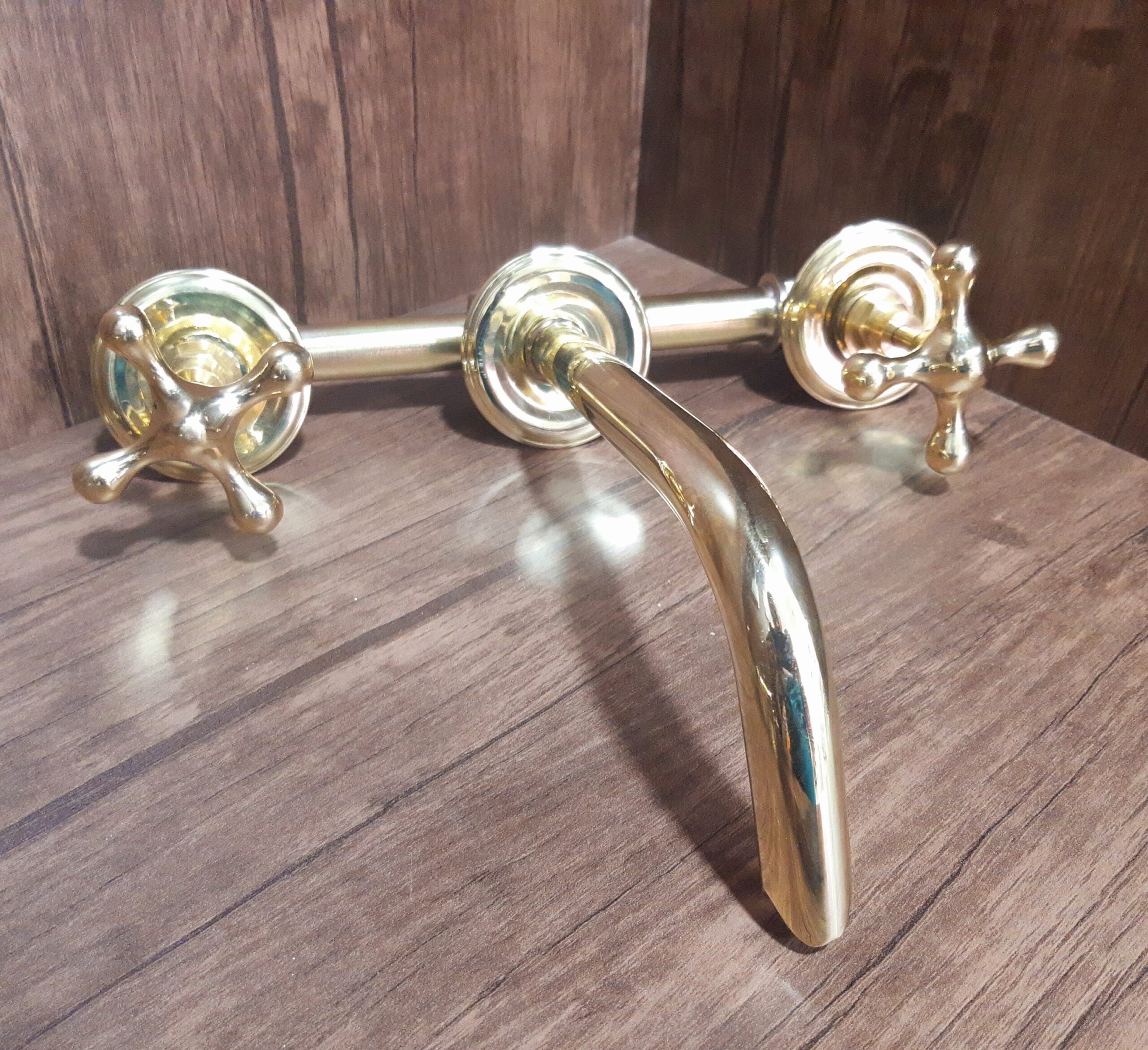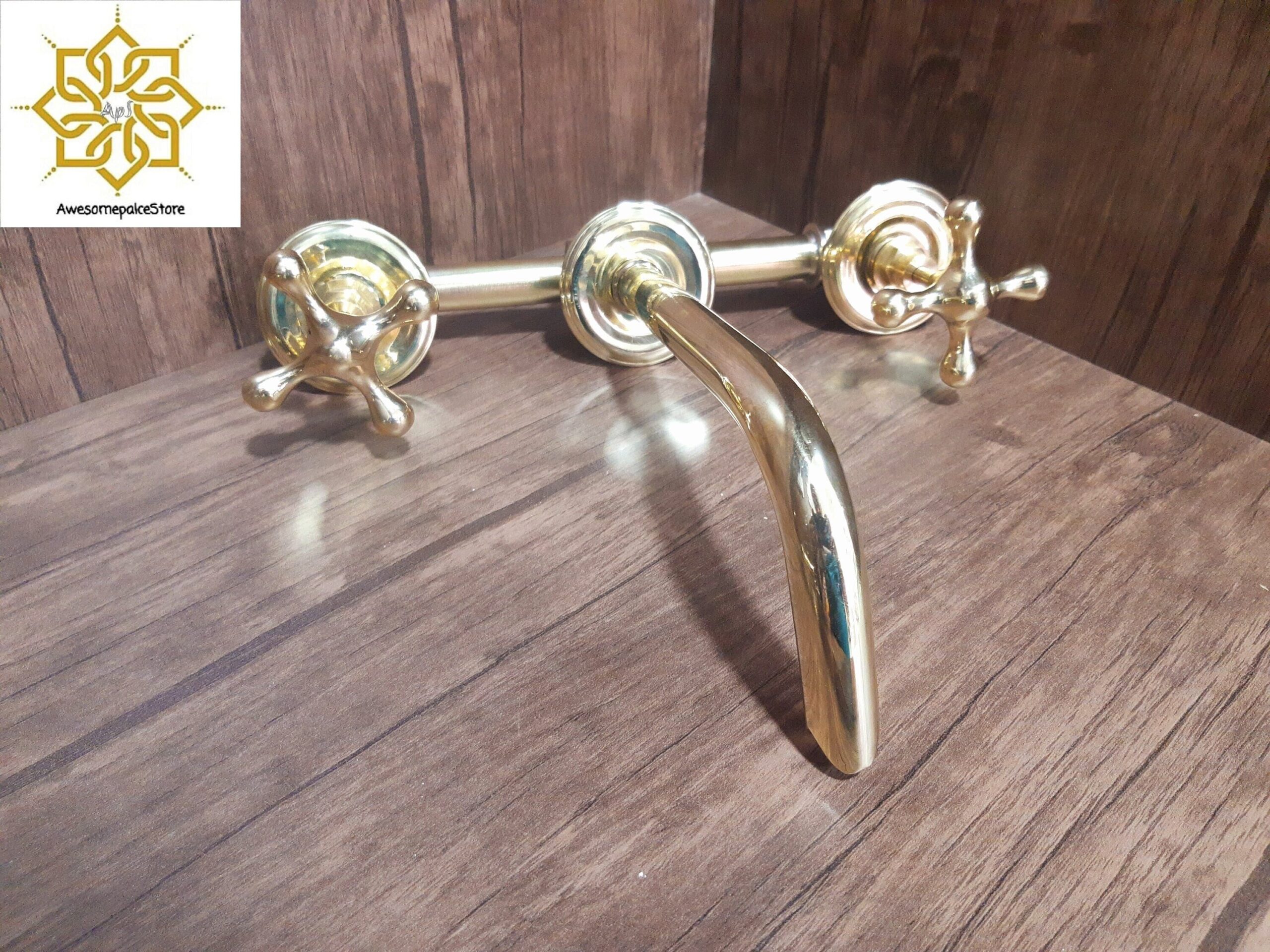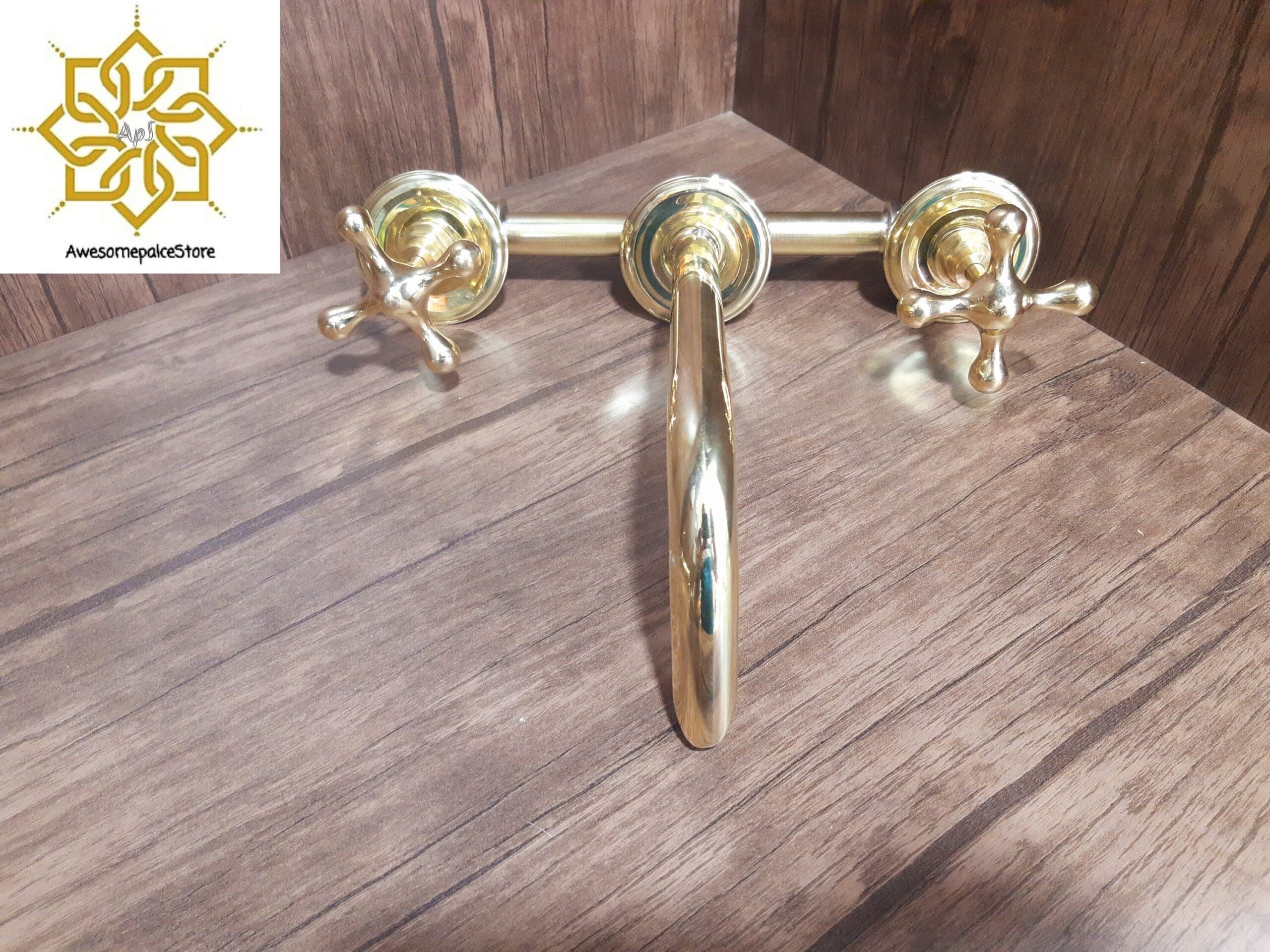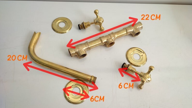 - Kitchen faucet,sprayer,bridge faucet,gold kitchen faucet,3 hole faucet,brass faucet,faucet set,gooseneck faucet,farmhouse,vintage faucet,Unlacquered Brass