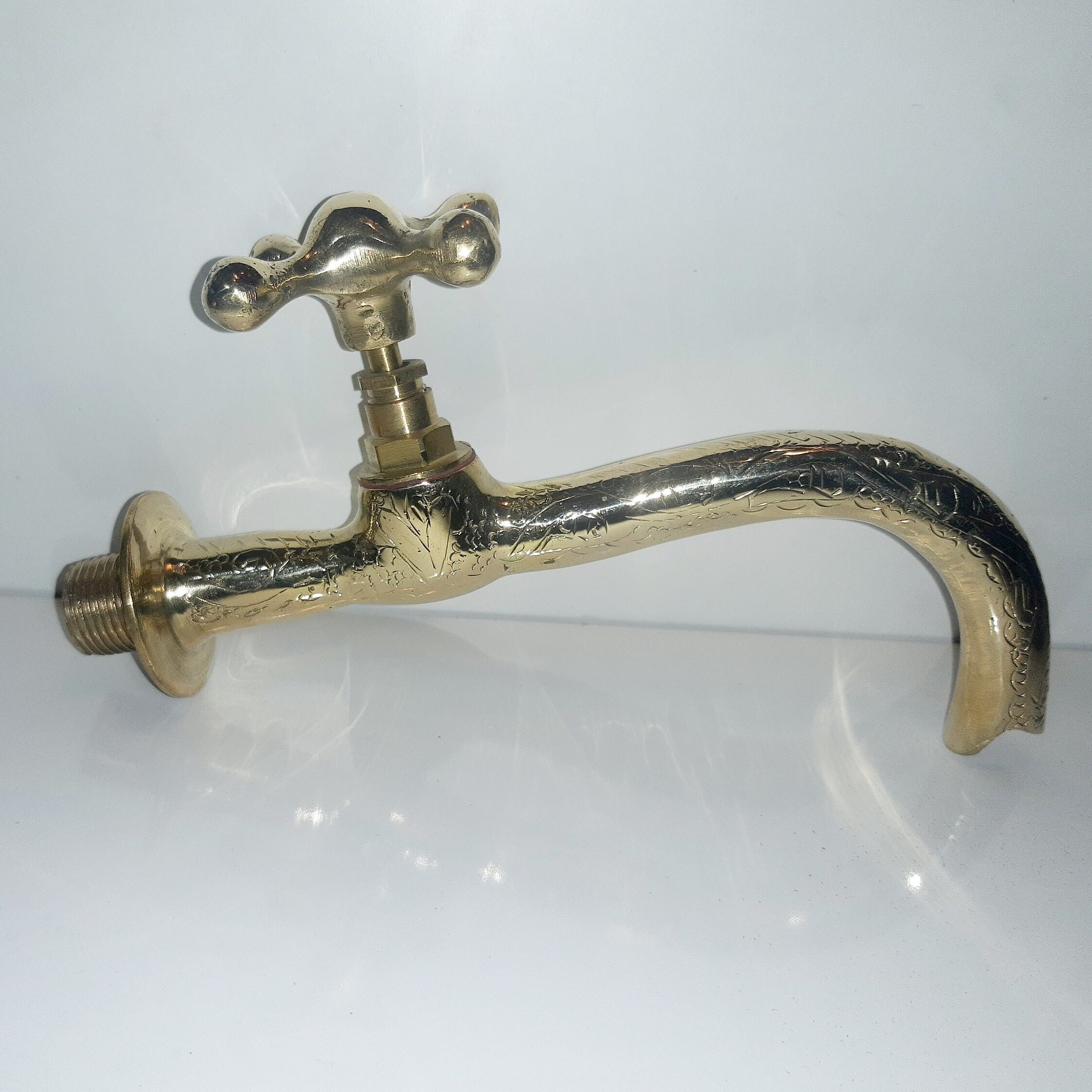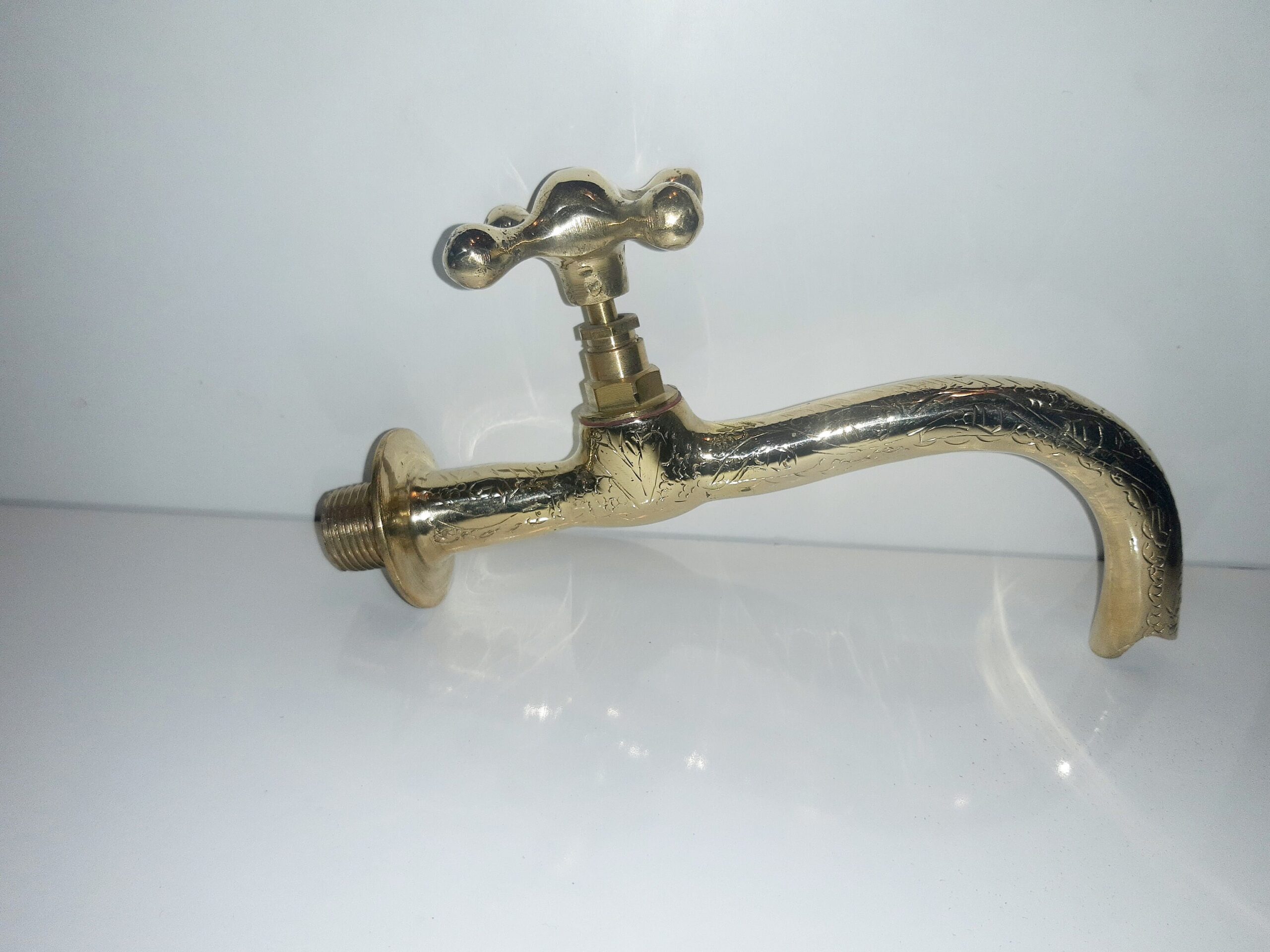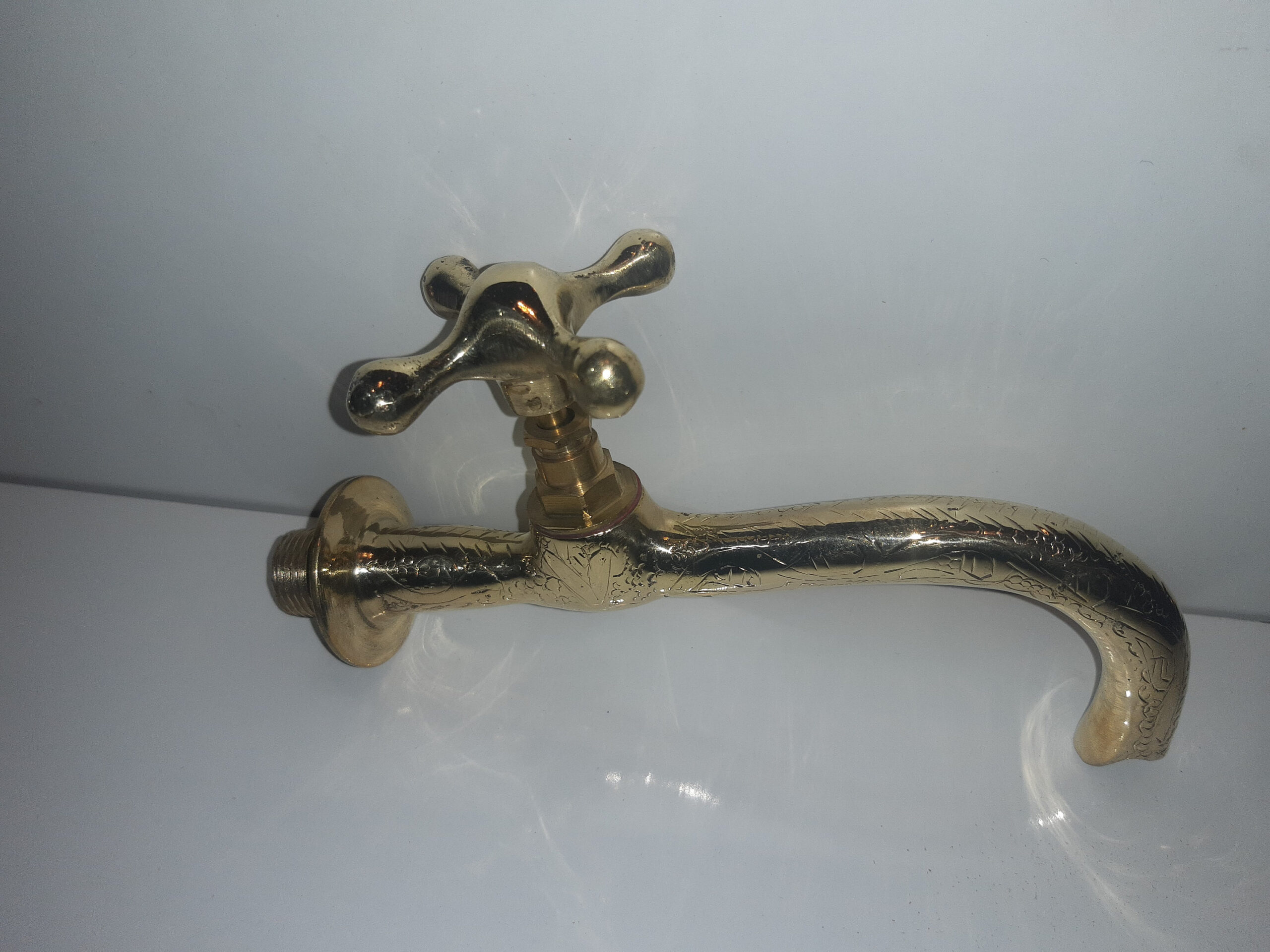 - Wall-mounted solid brass tap for gardens, fountains.
