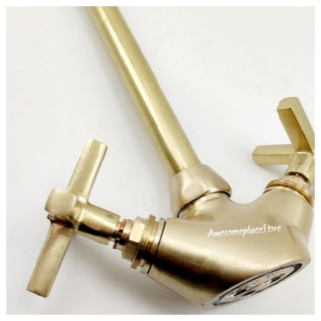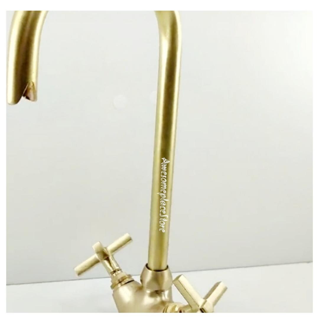 - Kitchen faucet,sprayer,bridge faucet,gold kitchen faucet,3 hole faucet,brass faucet,faucet set,gooseneck faucet,farmhouse,vintage faucet,Unlacquered Brass