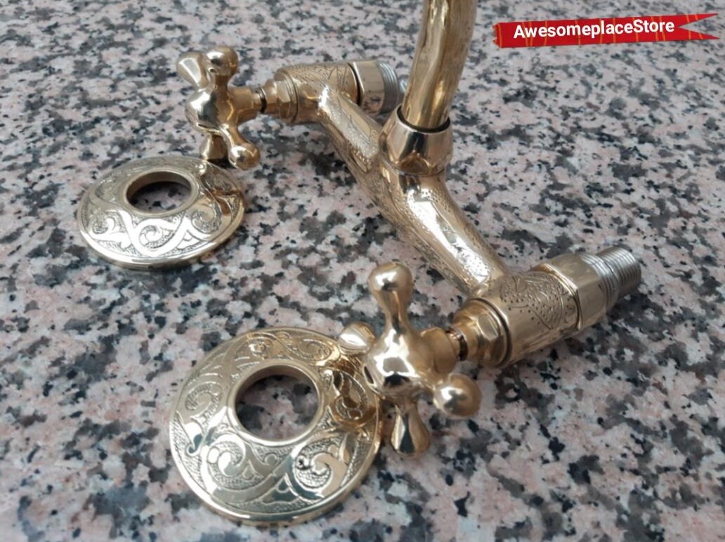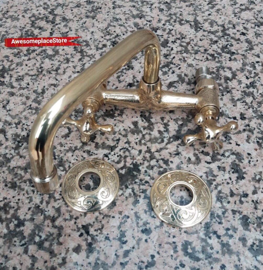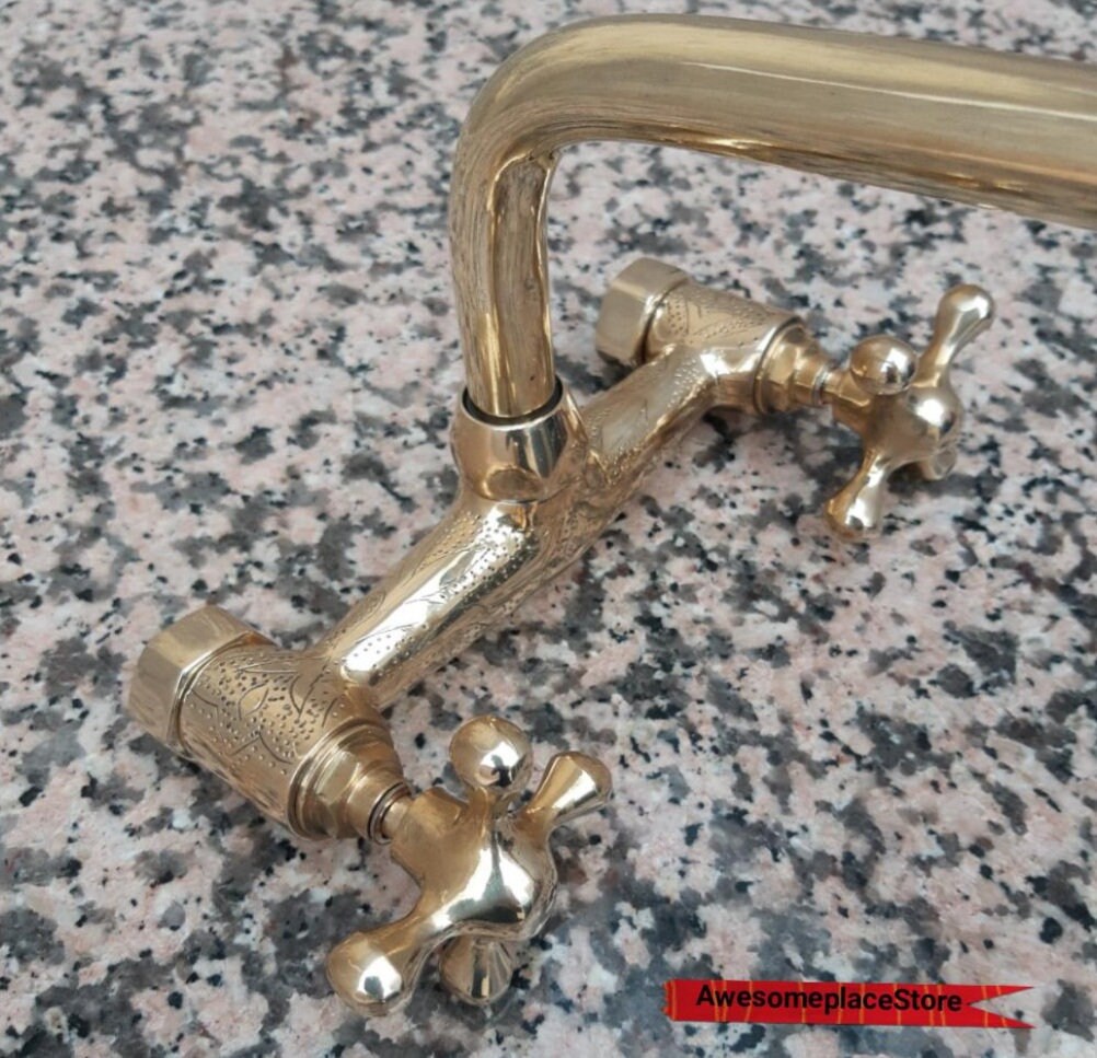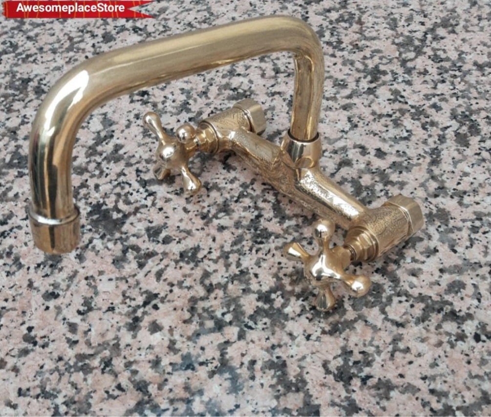 - Ce magnifique robinet de cuisine en Solid Brass avec bec carré court est de type mural, il est fabriqué à la main et fabriqué à la main à partir du Maroc, exactement Marrakech, avec plomberie américaine standard, le rend facile à installer. Ce robinet a 2 poignées faites à la main.