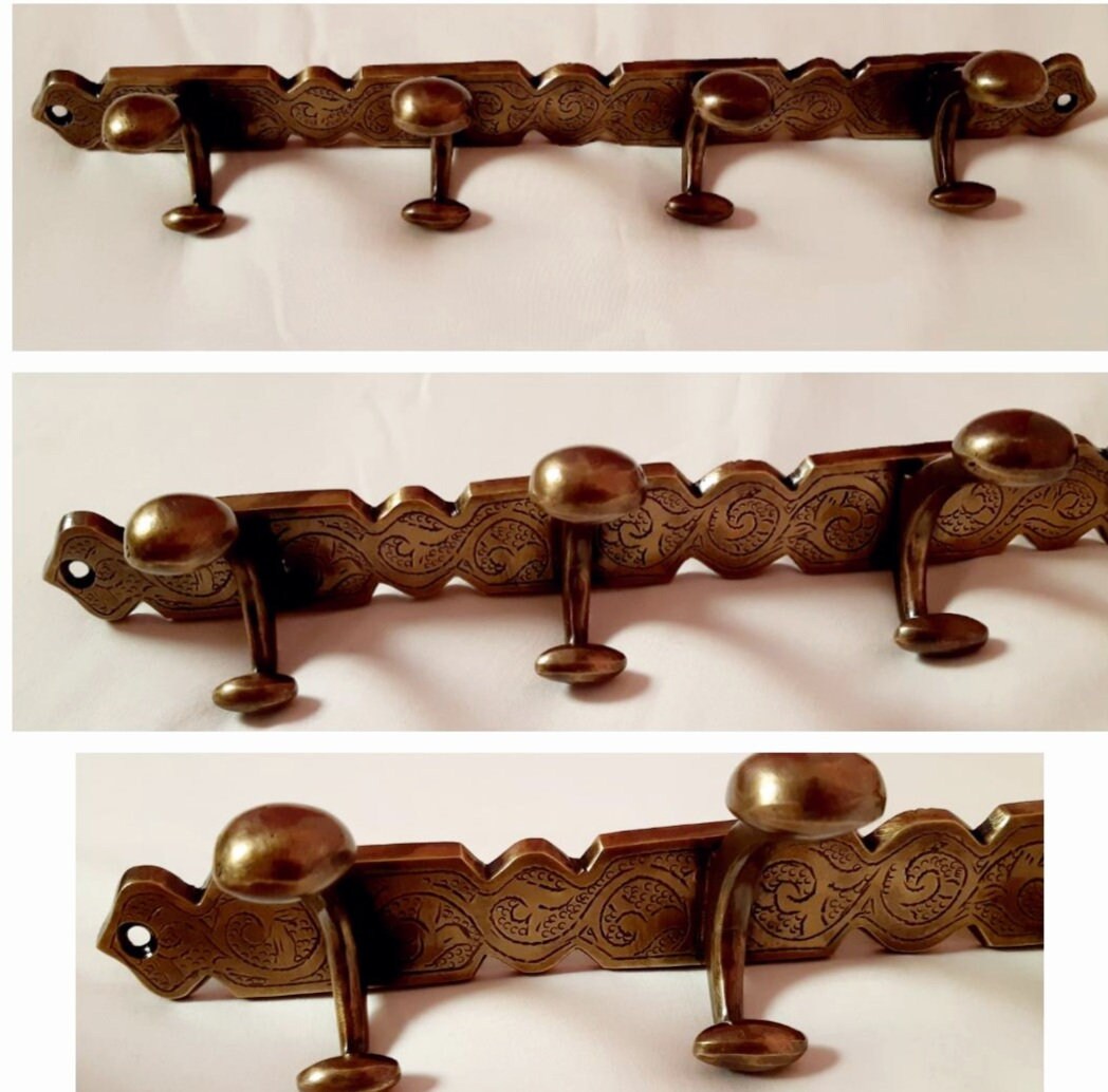 - Porte-manteau en laiton à montage mural Crochets à serviettes de salle de bain gravés Crochets à manteau mural Support mural à cintre