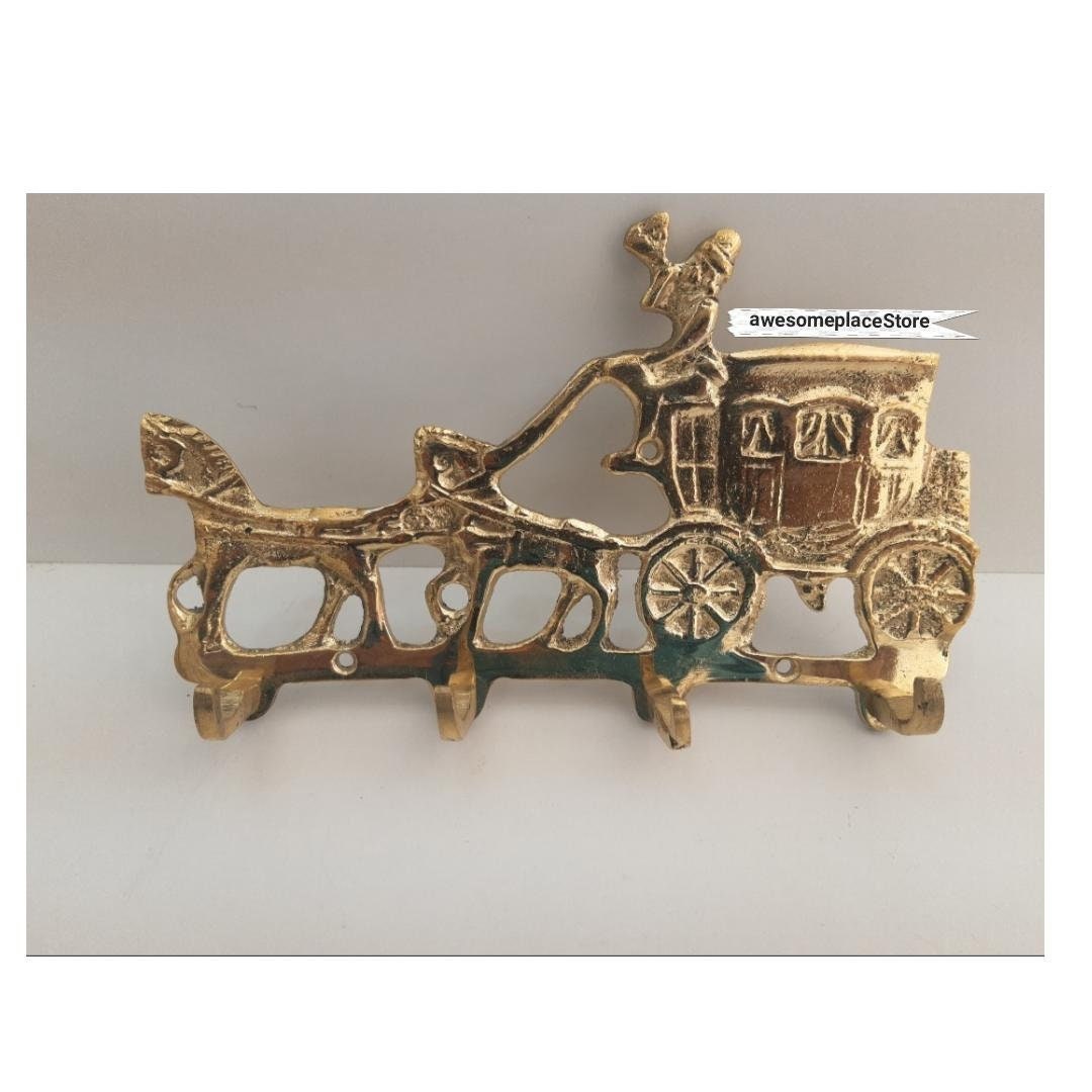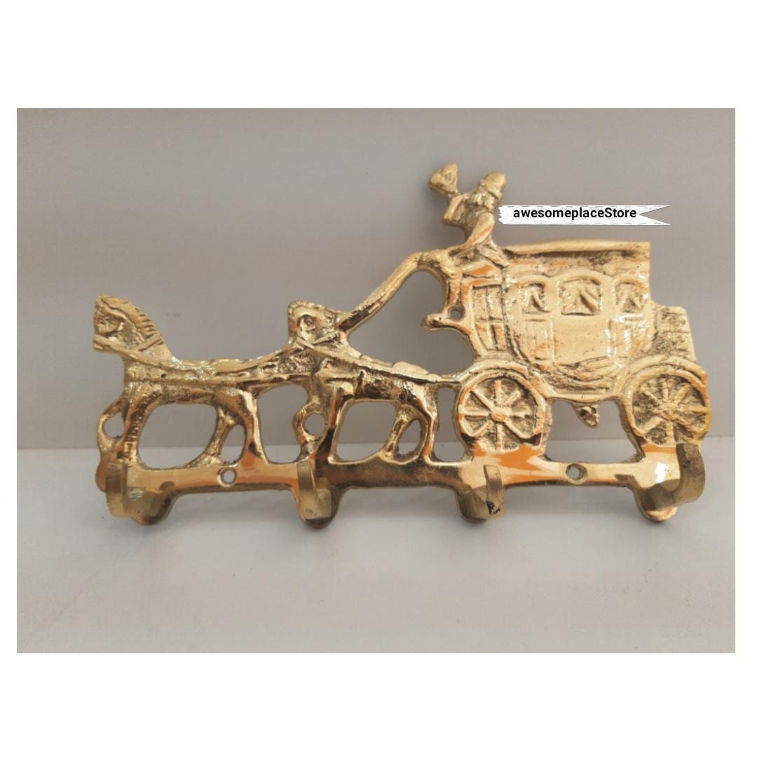 - Crochets en forme de chariot en laiton mural marocain, faits à la main