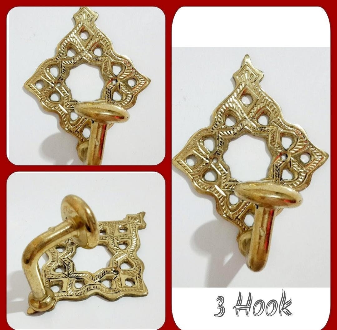 - 3 Ensemble de crochet en laiton marocain, crochet en Solid Brass de style marocain, manteau de montage mural en or fort, crochet de chapeau de style vintage crochet en laiton
