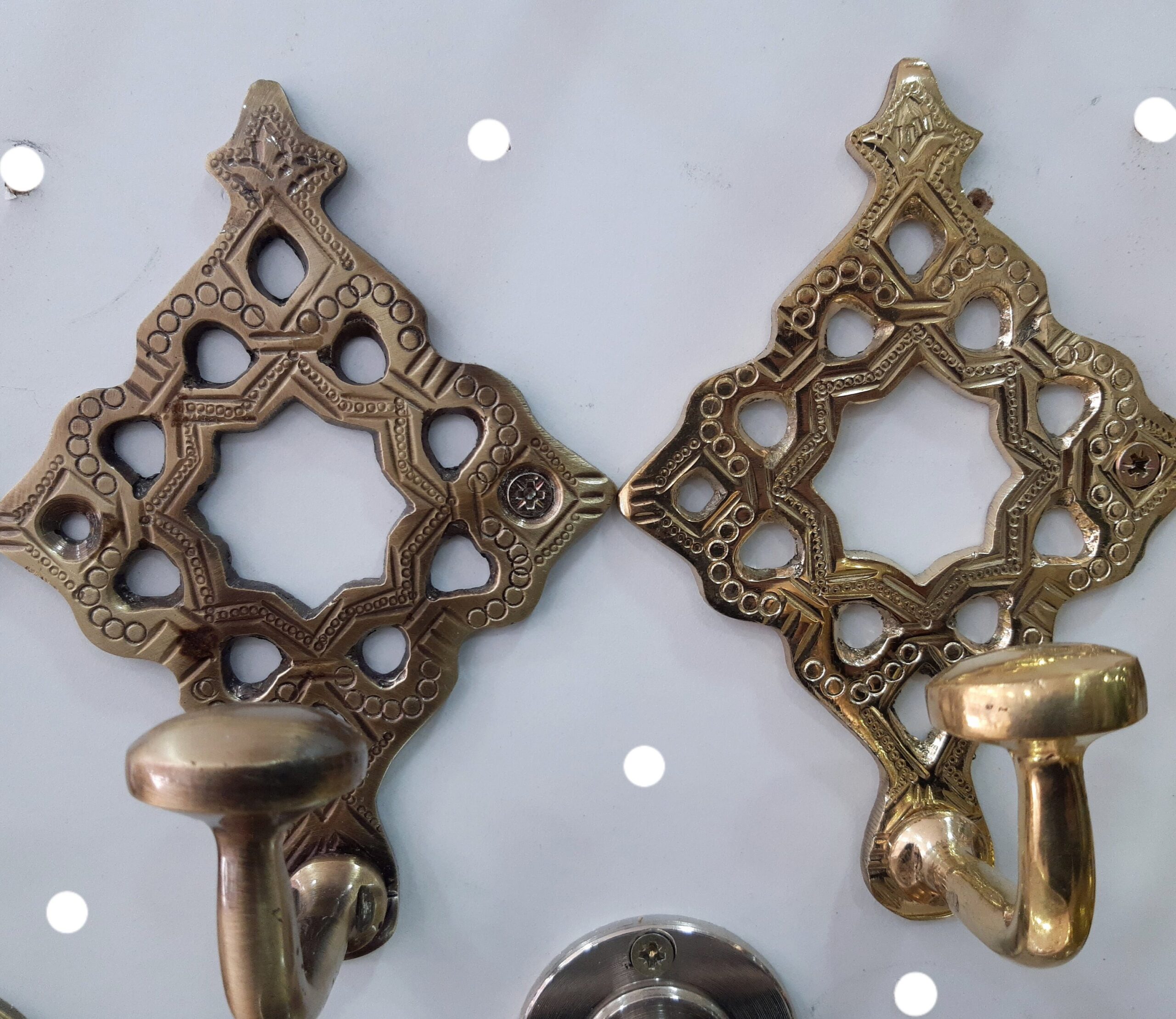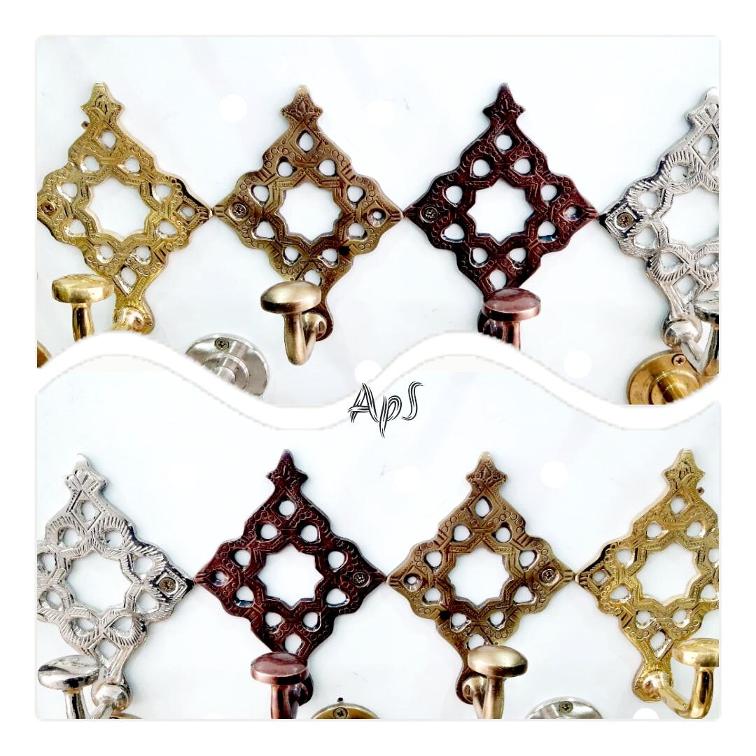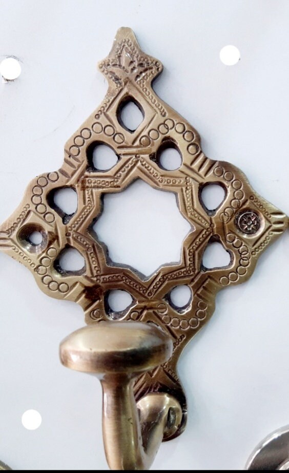 - Lot de 2 crochets en laiton marocain, crochet en Solid Brass de style marocain, manteau de montage mural en or fort, crochet à chapeau crochet en laiton de style vintage