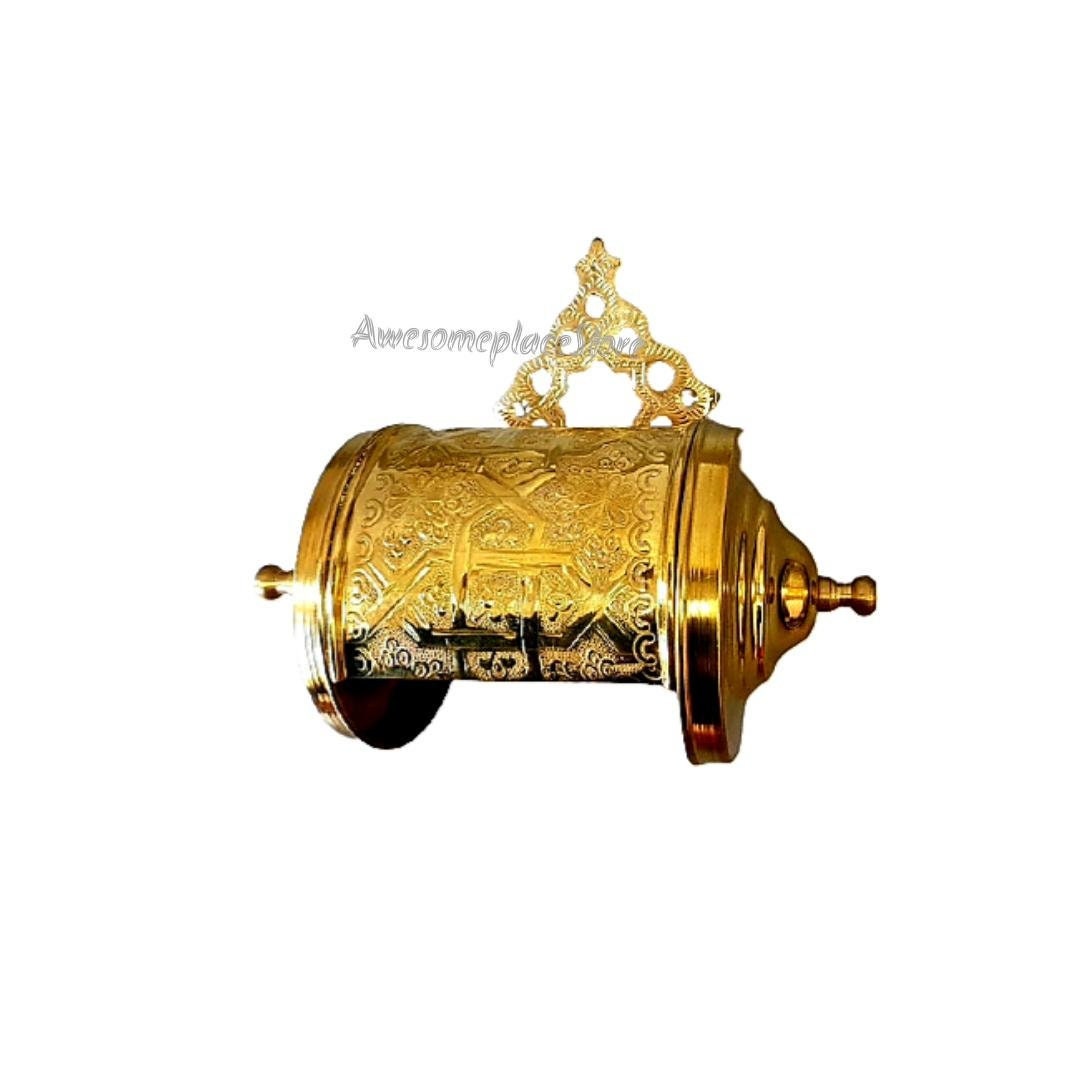 - Support de papier toilette en laiton Support de rouleau de papier toilette gaufré marocain Support de papier hygiénique gravé.