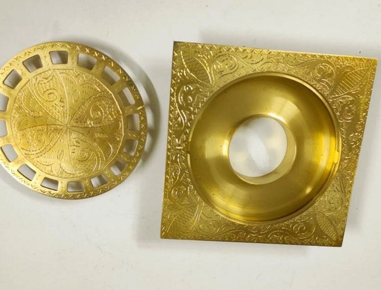 - Fabriqué à la main en laiton non laqué, ce drain de sol aura une finition vivante et une belle patine chaude.