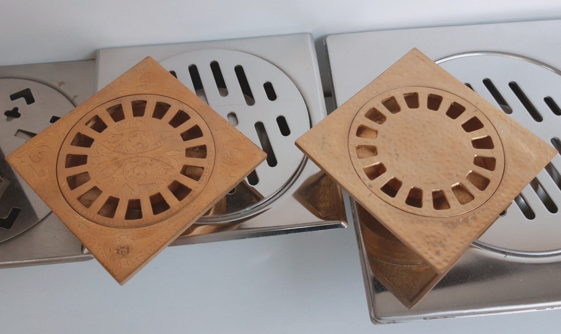 - Couvercle de drain de sol en Solid Brass martelé, drain de douche carré.