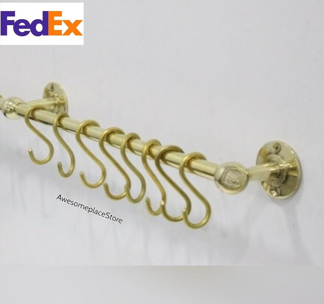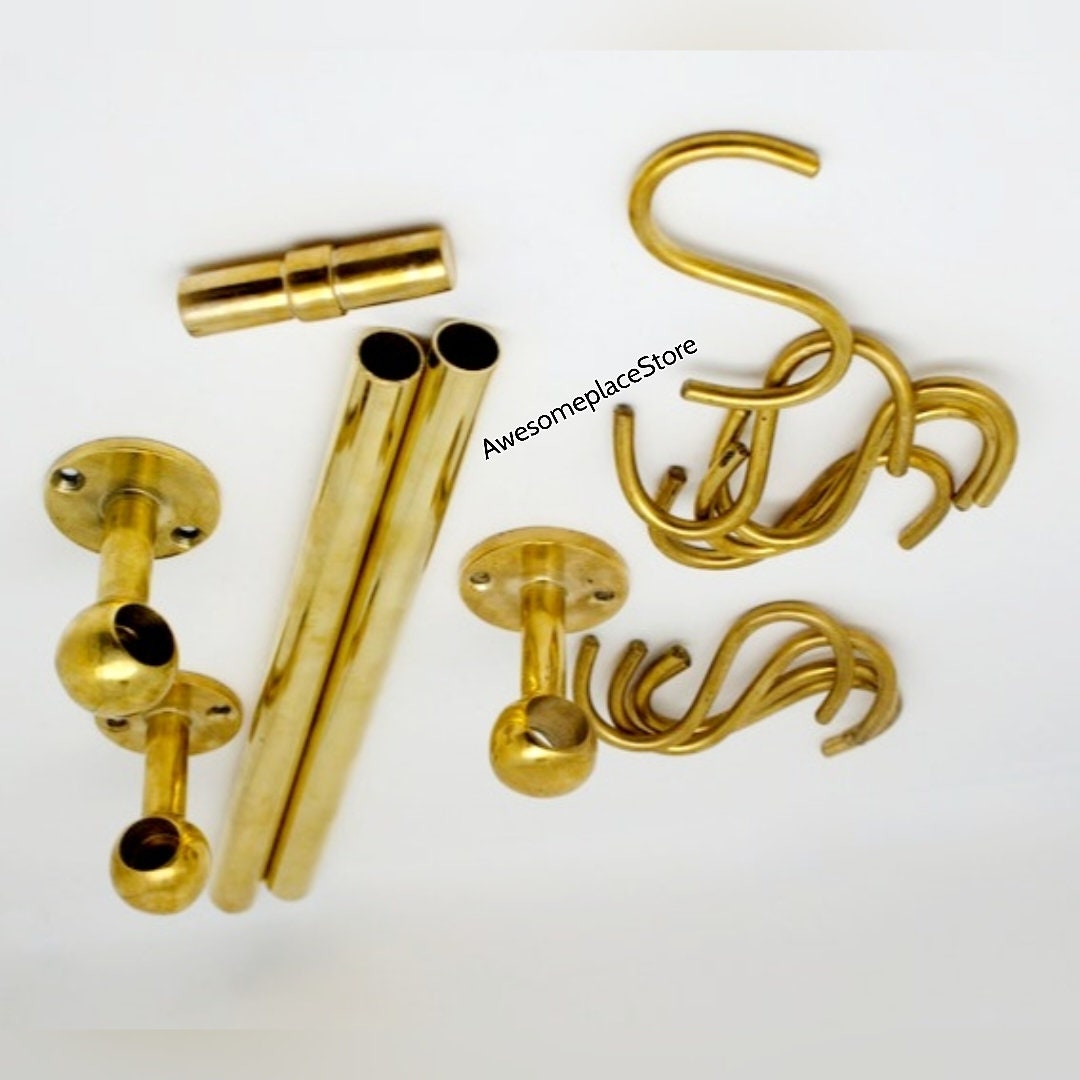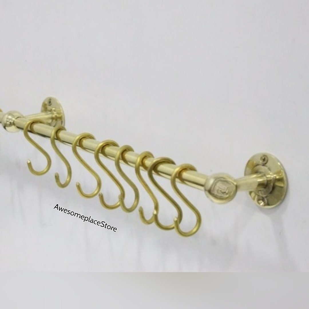 - Brass Pot and Pan Rail,Cuisine Storage, Brass Hanging Rail, Brass Kitchen Rack, Brass Towel Haner, Brass Bathroom Hanger, Brass Towel Rack,